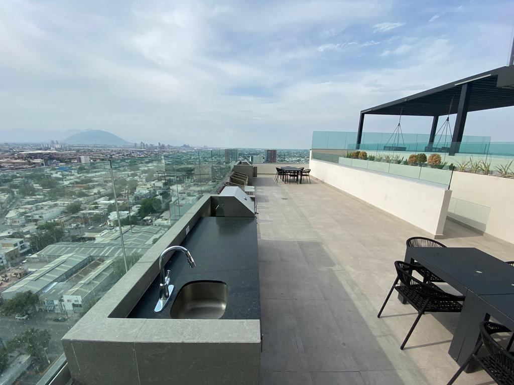Departamento en Renta completamente amueblado ubicado en Puntacero piso 22 frente a Parque Fundidora y CINTERMEX, totalmente equipado,cuenta con Balcon con vista a Parque Fundidora, excelentes Amenidades ubicadas en pisos 13 y 14, incluye 1 cajones de estacionamiento