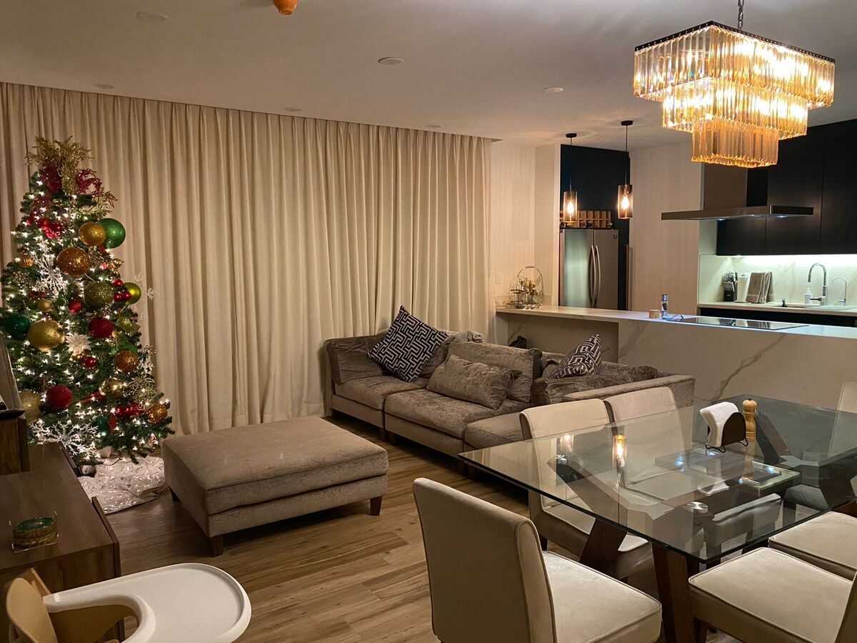 Completamente equipado con electrodomésticos, muebles, canceles, espejos, persianas y cortinas en area social.