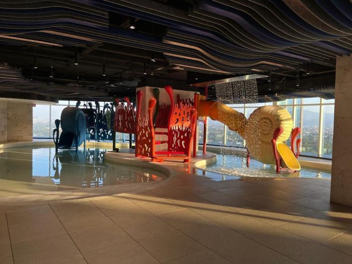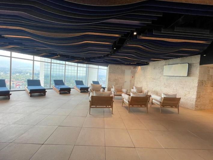 Amenidades: Salón de eventos (260 personas), Sala de cine, Alberca, Ludoteca, Área de juegos infantiles, Family rooms para visitas, Game room, Spa y Sauna, Sky pool con carril de nado, Gimnasio, Salón de spinning, Salón de yoga, Lounge, Salón de adultos, Motor Lobby con cuarto y baño de choferes, Conexión con centro comercial y supermercado, Lobby con buzones de correo, Ballroom con sala de estar, foyer, guarda ropa y recepción, Área para futbolito Scorpion, Alberca infantil, pilates y yoga con vestidores, Juice Bar, Salón de spinning, Salón de poker.