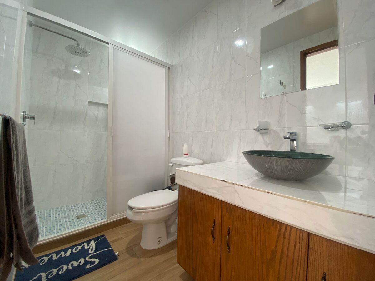 • Amplia recámara principal con cama matrimonial, clóset, escritorio y baño completo para total privacidad.