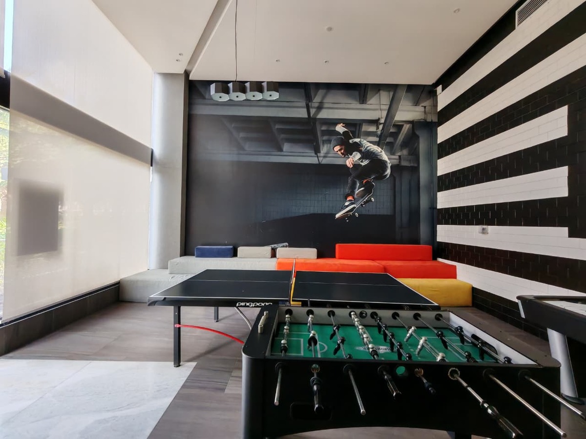 • Equipped with duplex refrigerator, gas oven, and microwave