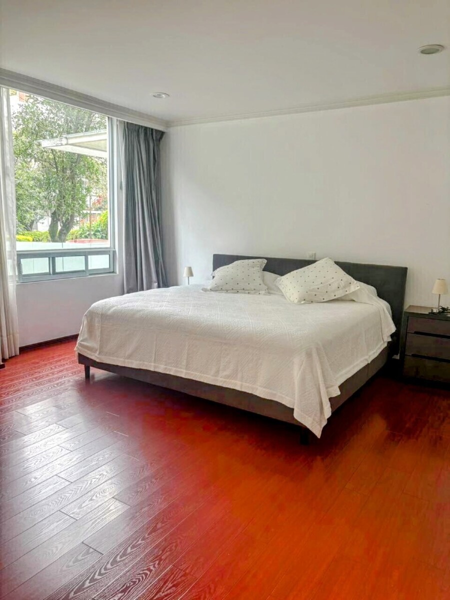 Incredible furnished apartment, wooden floors, bright, spacious, 2 bedrooms with the option for a third bedroom, each bedroom with its own bathroom, guest bathroom, TV room, study, laundry room, 24-hour security, excellent location, unique party room in the area in an exclusive building, only 12 apartments. Close to the supermarket, schools, restaurants, and banks.Increible departamento Amueblado , pisos de madera, luminoso, amplio, 2 recamaras con opción a una tercer recámara, cada recamara con su baño, baño de visitas, sala de tv, estudio, cuarto de lavado, seguridad 24 hrs, excelente ubicación, salón de fiestas único en la zona en exclusivo edificio, únicamente 12 deptos. Cerca del supermercado, colegios,restaurants y bancos.