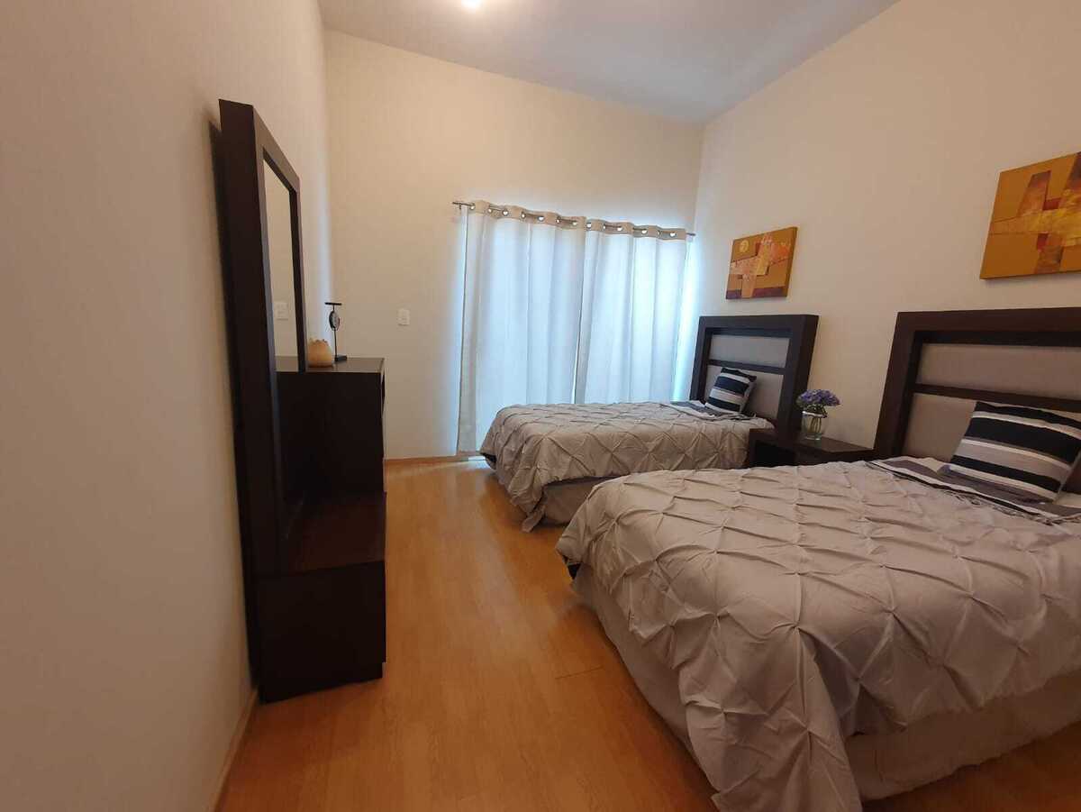 2-bedroom apartment, with 2 full bathrooms and a service bathroom, fully furnished.