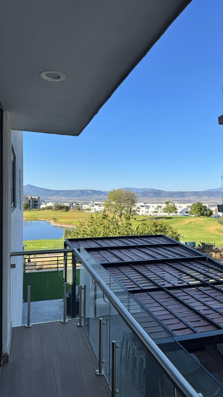 With a view of the golf course, luxury apartment with excellent views, equipment, and amenities for your comfort, experience the style and comfort in our apartments with luxury finishes, security, and tranquility that you and your family deserve. Our development offers you privacy, with 5 levels and 10 apartments per tower with underground parking. Enjoy spacious areas with your family in the 255m2 and its excellent distribution with a quartz-equipped kitchen with electric stove, 3 bedrooms, pantry, living room, dining room, television room (optional as a bedroom), quartz bar, and storage room. For your greater comfort, it also has a storage room in the parking lot and a service room with a full bathroom, plus it has a solar heater and electric heater, your wonderful roof garden with luxury finishes, storage room, grill, service bar, sink, grill, and pergolas. Our development is located in the most successful residential area with excellent appreciation in Querétaro and offers you basic services nearby for better security and tranquility. All this to share with your family and friends in our excellent areas of pool, gym, jacuzzi, sauna, and grills. Apartment features: equipped kitchen, pantry, living room, dining room, bar, 3 bedrooms, 2 1/2 bathrooms with solar heater, 1 study with option to be a bedroom, laundry room, storage room in the parking lot, view of the golf course. Amenities: pool, jacuzzi, gym, sauna, grill area.Con vista al campo de golf, departamento de lujo con excelentes vistas, equipamiento y amenidades para tu confort , vive la experiencia del estilo y el confort en nuestros departamentos con acabados de lujo, seguridad y tranquilidad que tú y tu familia merecen. nuestro desarrollo te ofrece privacidad, al contar con 5 niveles y 10 departamentos por torre con estacionamiento subterráneo. disfruta con tu familia sus amplios espacios en los 255m2 y su excelente distribución con
