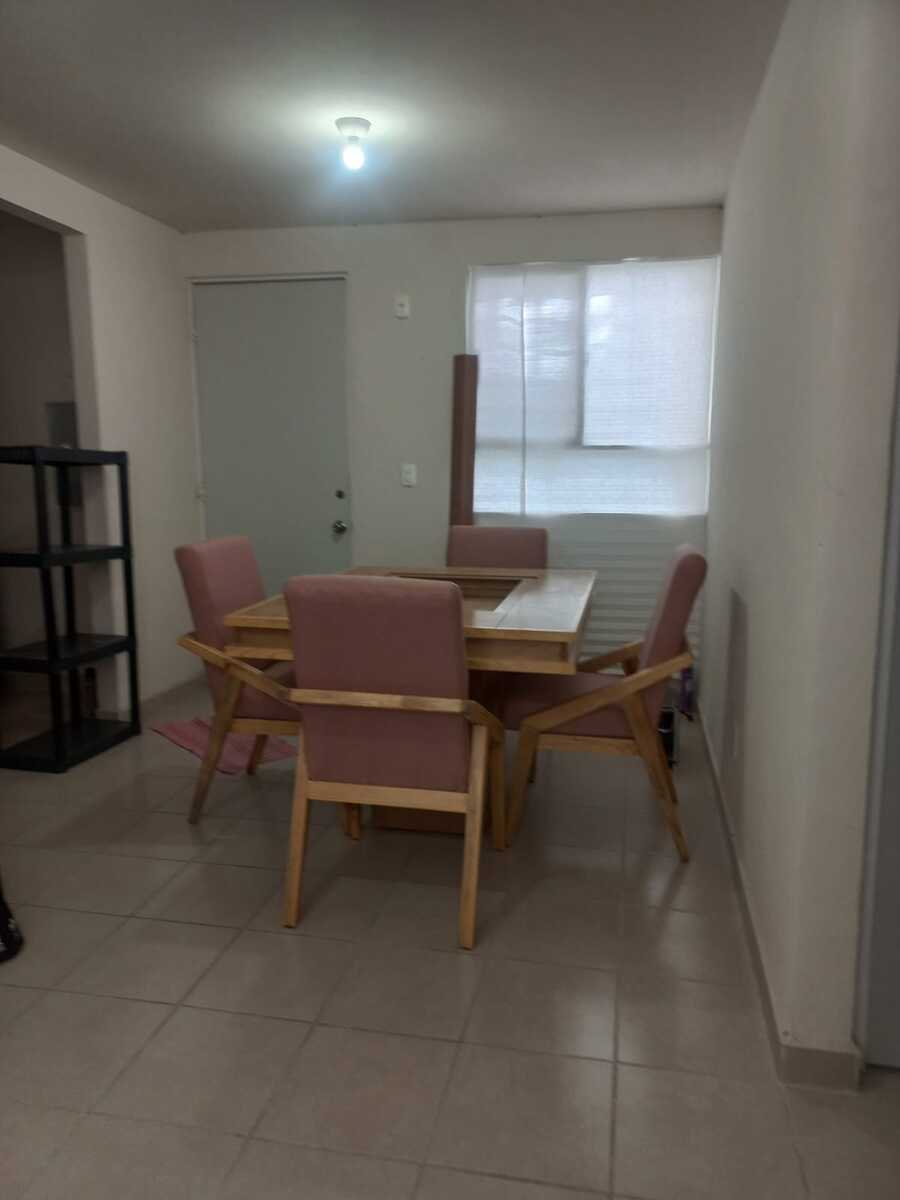 La propiedad incluye, estacionamiento privado, dos recámaras, una de ellas incluye base matrimonial con colchón, 1 baño completo, área social con muebles de comedor y sala, zotehuela, tarja en cocina, refrigerador y estufa.