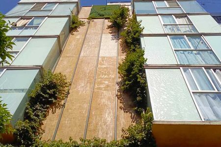 The layout makes the most of natural light and includes two bedrooms, two full bathrooms, a small integrated laundry room, and a parking space. The building is pet-friendly, has an elevator, and offers a safe environment with 24-hour security, prioritizing the privacy and tranquility of its residents.Ubicado en un edificio de diseño contemporáneo que destaca por sus pasillos de madera y jardines interiores, este departamento de 100 m² en la calle de Algeciras ofrece un espacio tranquilo a unos pasos de la Universidad Panamericana. El espacio se renta sin amueblar y su principal atractivo es una amplia terraza privada con vista directa a la copa de los árboles del parque, ideal para disfrutar al aire libre.