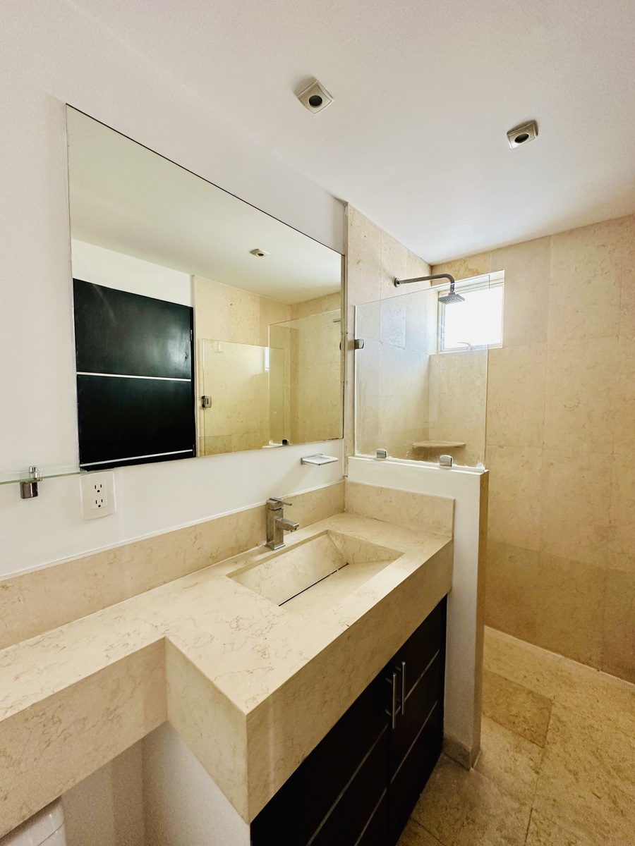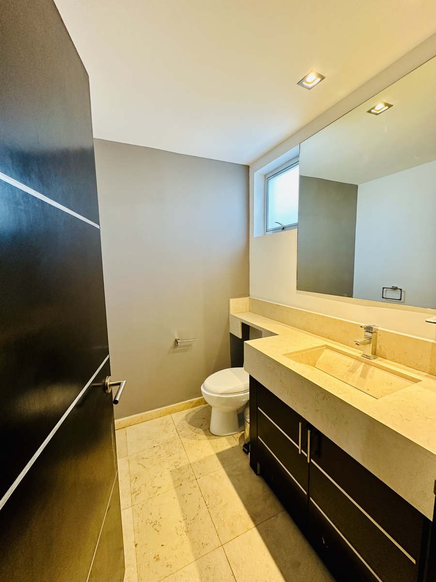 Cuenta con 2 recámaras, 3.5 baños, cuarto de servicio y 2 estacionamientos.