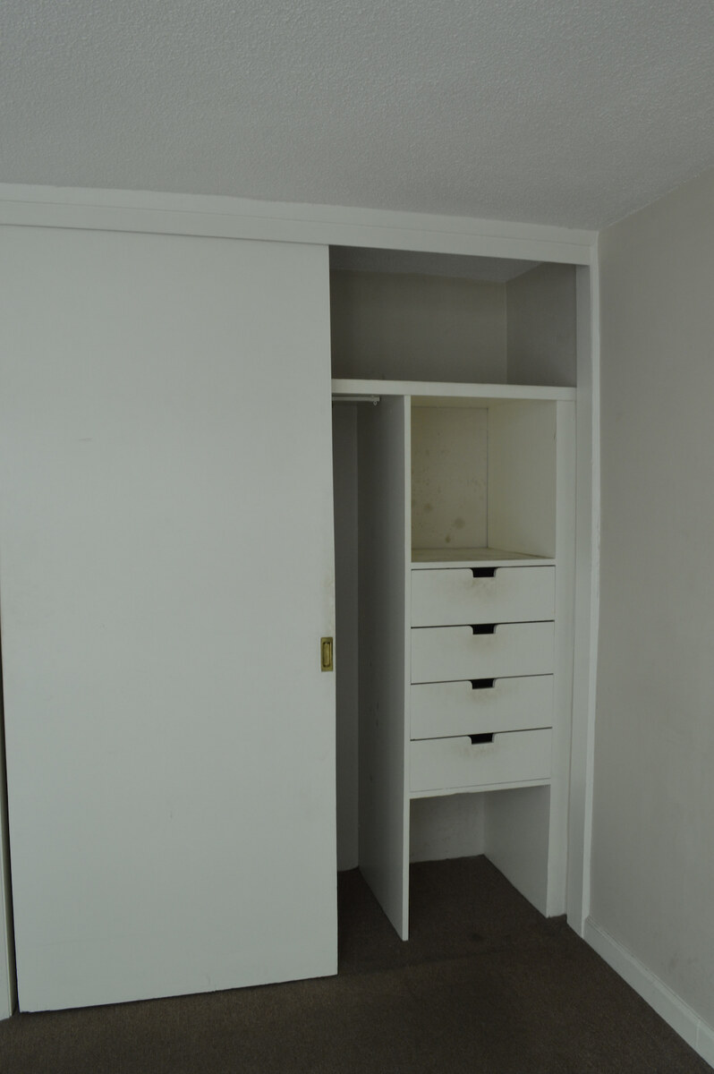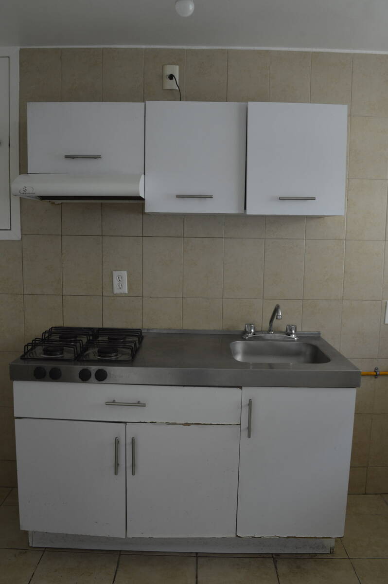Dos recámaras con clóset, estancia con balcón, cocina equipada y baño completo.
