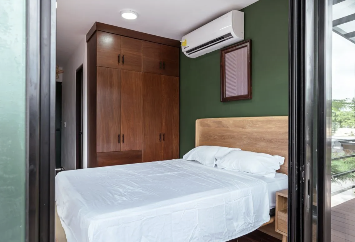 - Kitchen/Living room with electric grill, extractor, refrigerator, and air conditioning.
