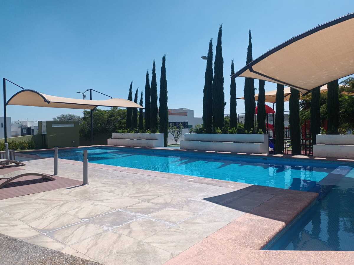 Beautiful house for rent in an excellent condominium just minutes from downtown Querétaro, featuring 4 air-conditioned bedrooms (INVERTER air conditioning), 1 study, 3.5 full bathrooms, laundry room, integral kitchen, and also has a roof garden where you can hold your pleasant gatherings, as well as 2 parking spaces. It includes amenities such as a palapa, swimming pool, and playground for children. It has 24-7 security.Se renta hermosa casa en excelente condominio a minutos del centro de Querétararo, cuenta con 4 recámaras climatizadas (aire acondicionado INVERTER), 1 estudio, 3.5 baños completos, cuarto de lavado, cocina integral, también cuenta con un roof garden donde puedes tener tus amenas reuniones, así como 2 lugares de estacionamiento. Cuenta con amenidades que incluyen palapa, alberca, juegos para niños. Cuenta con vigilancia 24-7