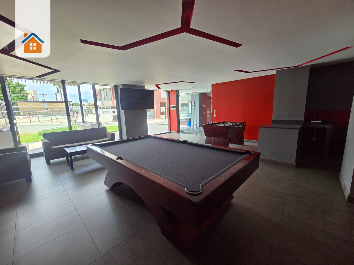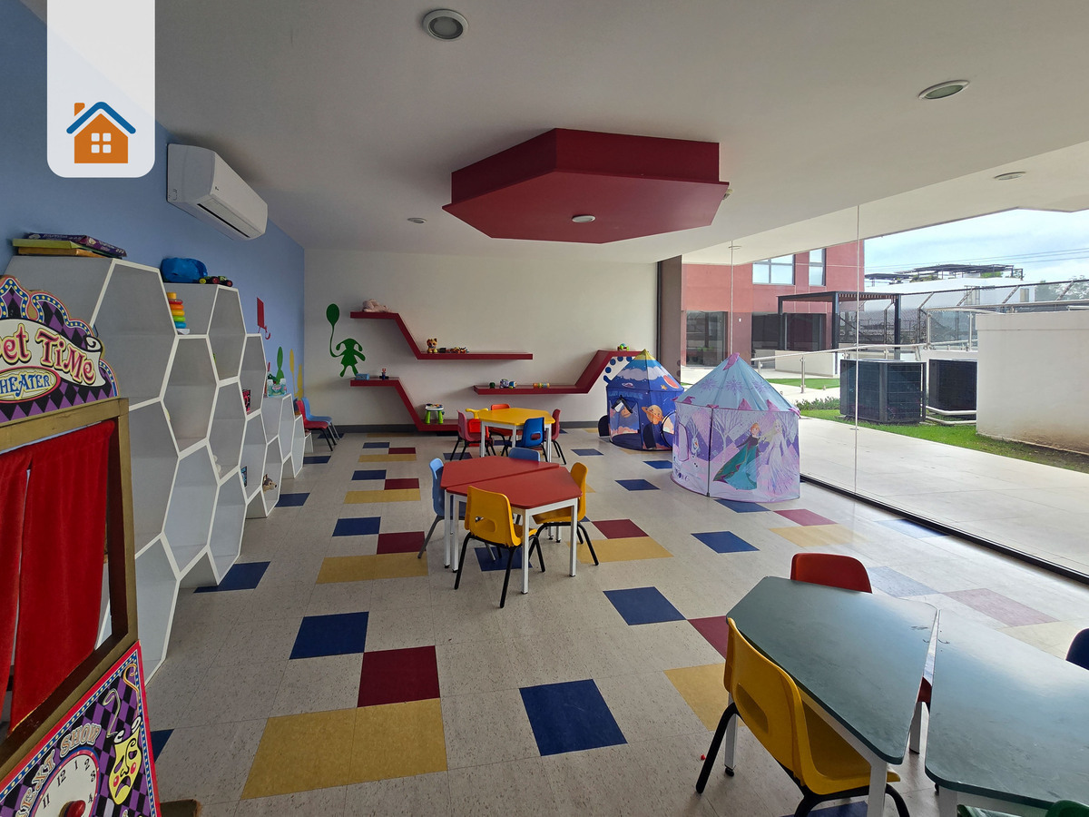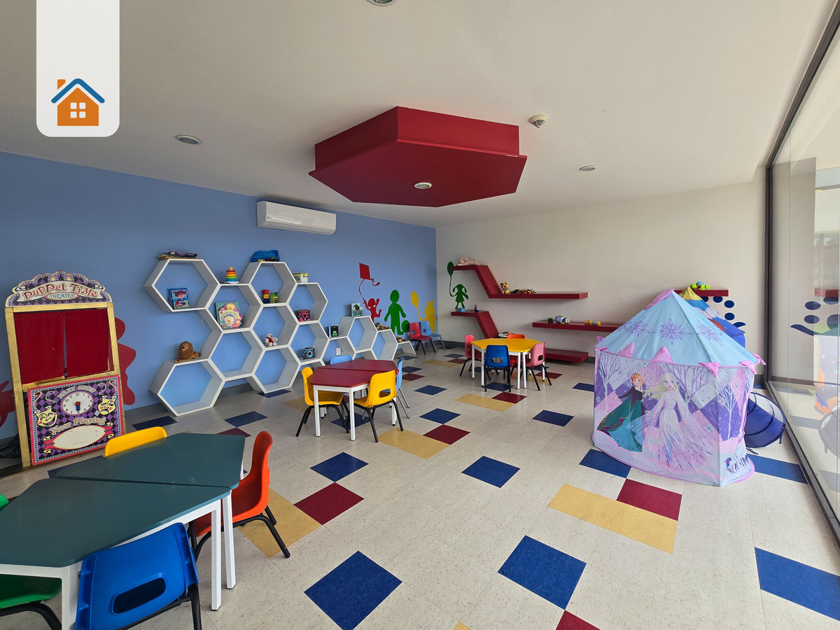 - Alberca, Salón de usos múltiples, Gimnasio, Ludoteca