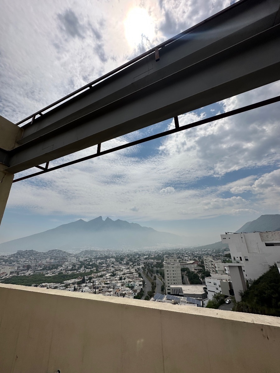 Loft apartment for rent on Fundadores Avenue in Monterrey. With 41 m2 of construction, 1 bedroom with bathroom and closet, kitchen, living room, dining room, 1 parking drawer (not assigned), small balcony, laundry room, it is located on level 12, in an excellent location, with views of the Cerro de la Silla.