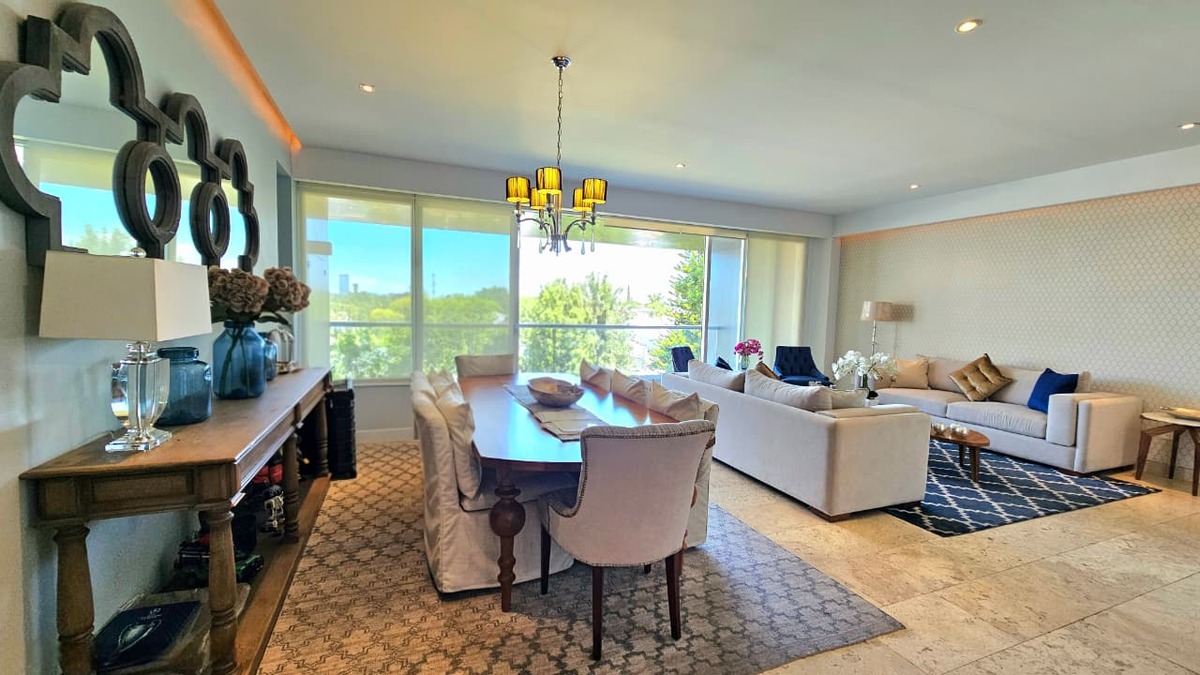 - Sala y Comedor: Con vista impresionante al jardín del edificio, perfecto para disfrutar de momentos inolvidables.