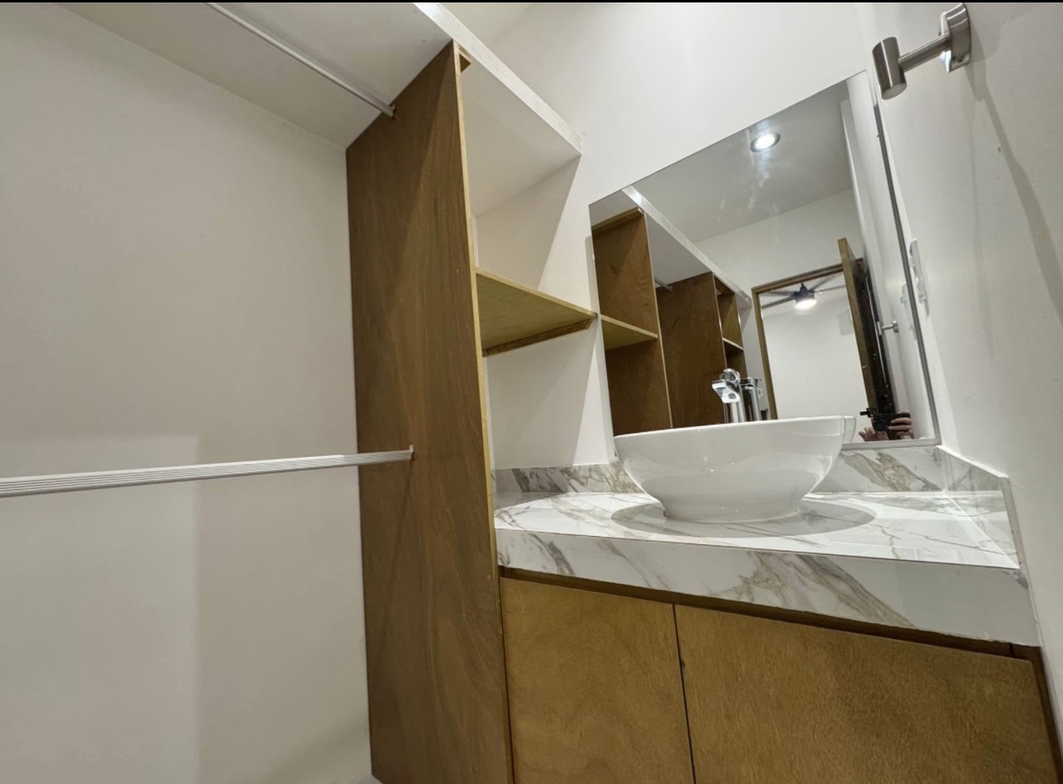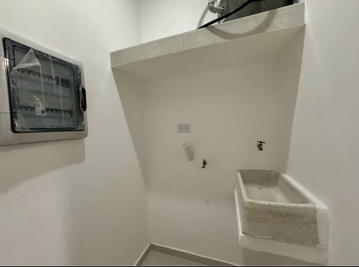 Atrás de ella, un closet de lavado, con instalación lista y un lavadero estilo México. No incluye lavadora.