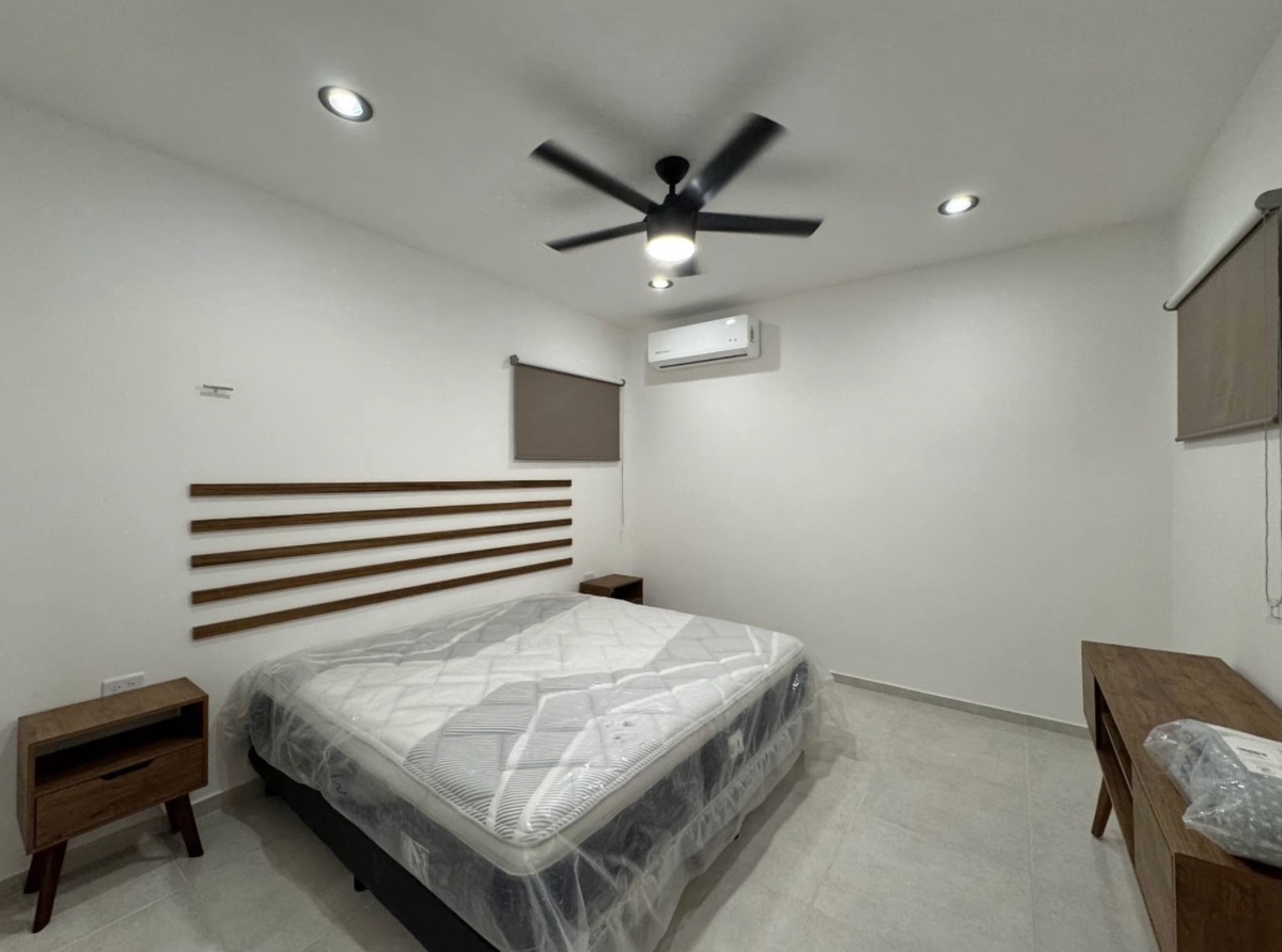 La principal está vestida con una cama tamaño King y tiene un walk-in closet de buen tamaño y baño privado. La secundaria, está vestida con una cama matrimonial.