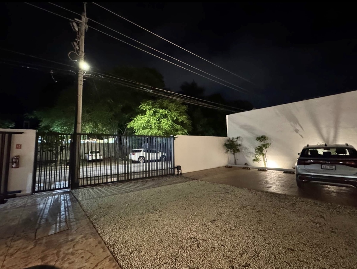Un complejo privado con caseta de vigilancia y acceso controlado por medio de rejas con motor eléctrico. Tiene cámaras de vigilancia y un intercom en la parte de afuera.