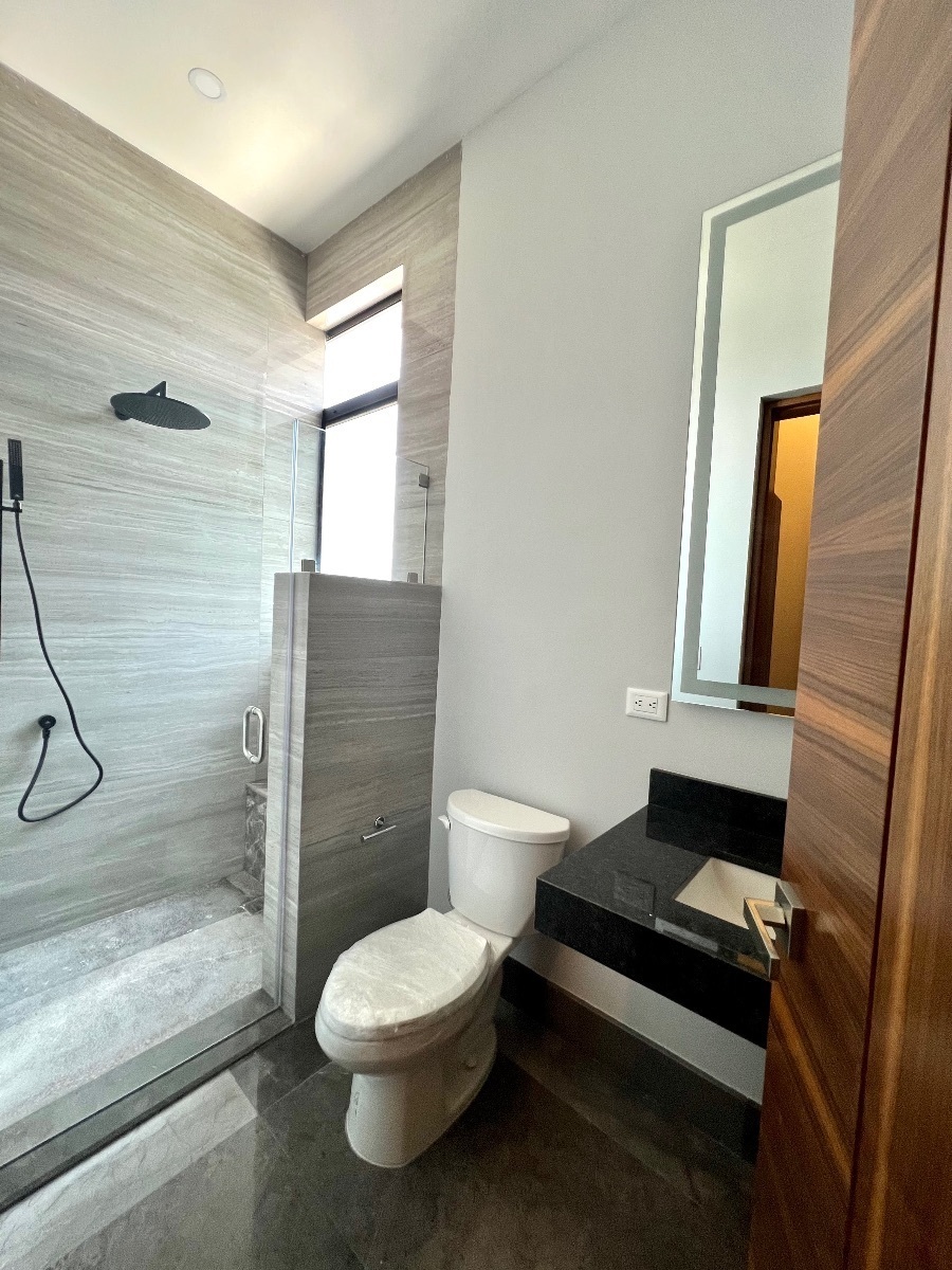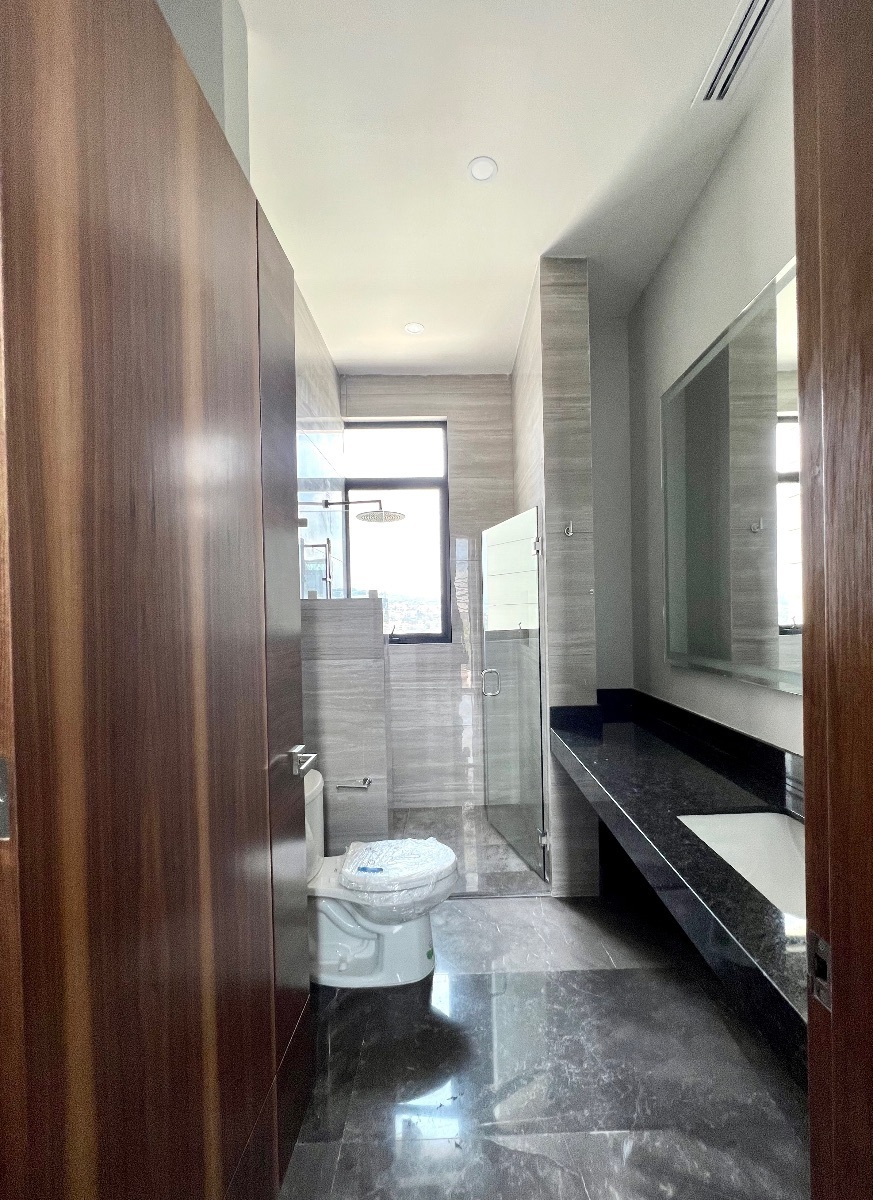 It has 3 bedrooms, each with a bathroom and closets. Living room, dining room, kitchen, guest bathroom, and a large terrace with spectacular views of the Sierra Madre.