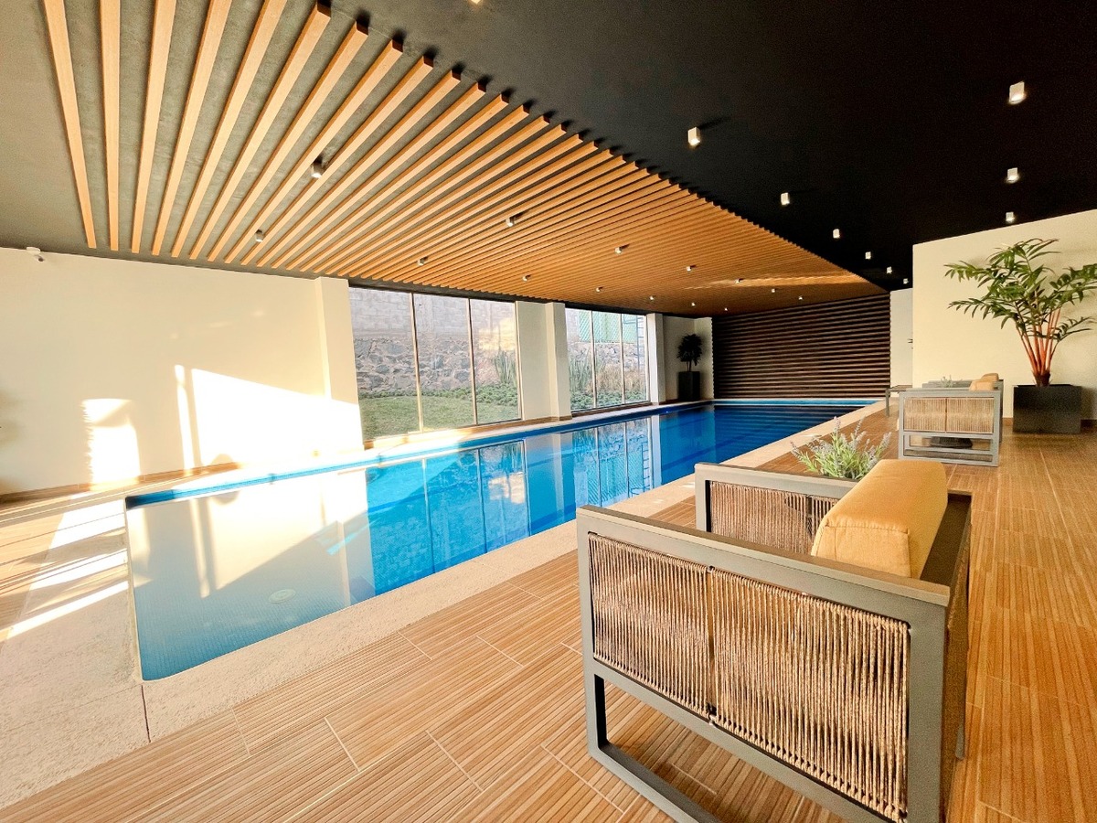 Brand new beautiful apartment for rent. Spacious living room with integrated kitchen and laundry area, two bedrooms, the main one with a dressing room and bathroom, large terrace, storage room located on the same floor, two parking spaces. Located on the 4th floor. The development is exclusive with 24-hour security, direct access to Av. Fray Junípero Serra in El Refugio. It has a park, multipurpose court, paddle court, barbecue area, play areas, as well as an incredible clubhouse with two swimming pools, party garden, children's library, gym, spa, sauna, steam room, game room, terrace, and coworking area.Estrena Hermoso departamento en renta. Amplia estancia con cocina integral y área de lavado, dos recamaras, la principal con vestidor y baño, amplia terraza, bodega ubicada en el mismo piso, dos cajones de estacionamiento. Ubicado en Piso 4 . El desarrollo es exclusivo con seguridad las 24 hrs. acceso directo a la Av. Fray Junípero Serra en el Refugio. Cuenta con parque, cancha de usos múltiples, cancha de paddle, área de asadores, áreas de juegos, así como una increíble casa club con dos albercas, jardín de fiestas, ludoteca, gimnasio, spa, sauna, vapor, cuarto de juegos, terraza y área de coworking.