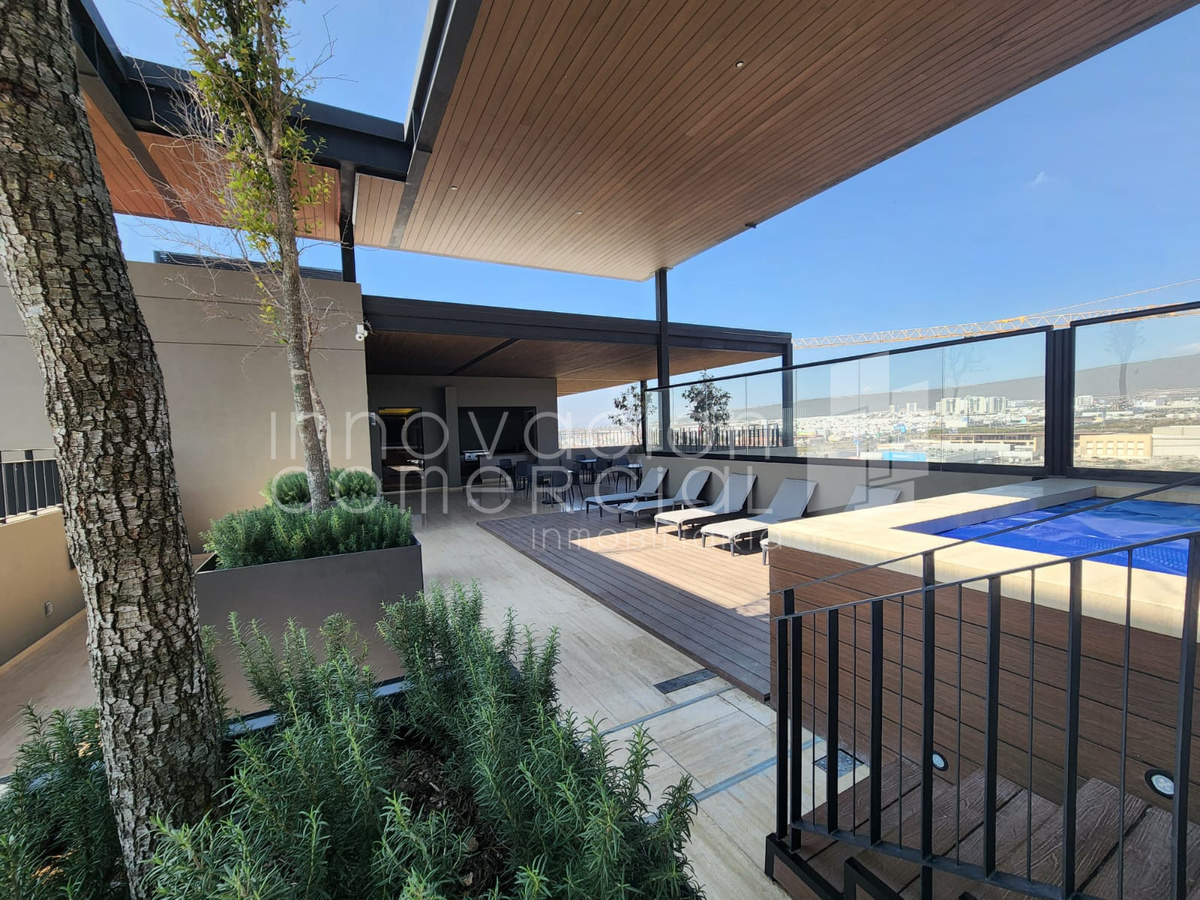 Rooftop con alberca, vista panorámica, área de asadores, fire pits, terraza y solárium.