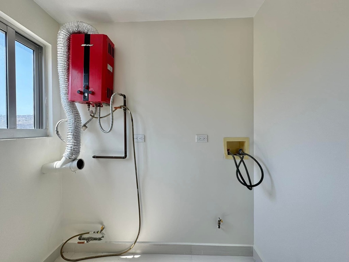 Equipado con estufa, campana, boiler de paso, muebles de baño, accesorios y persianas.