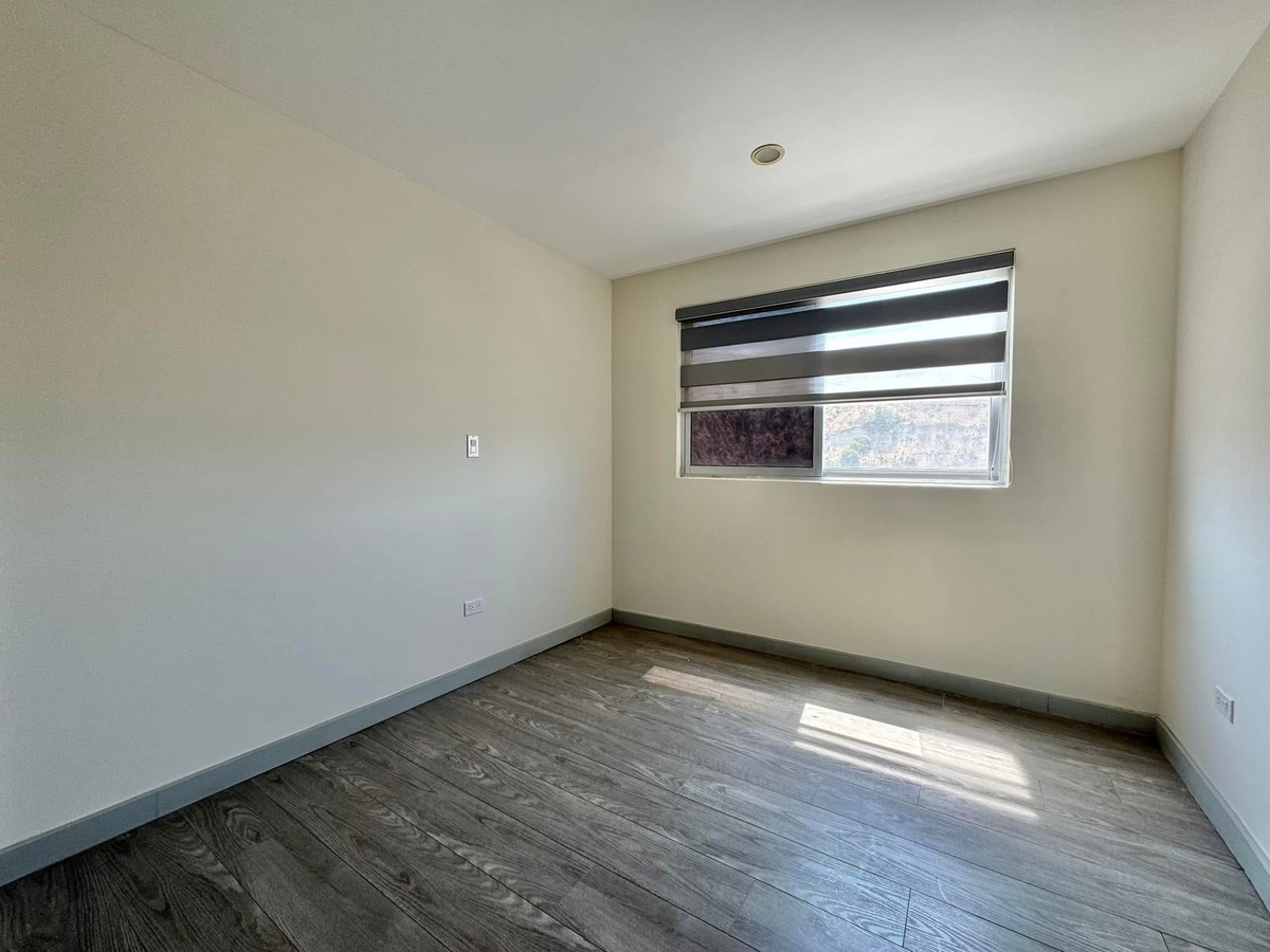 Acabados de piso laminado en recámaras y porcelanato en cocina y baños.