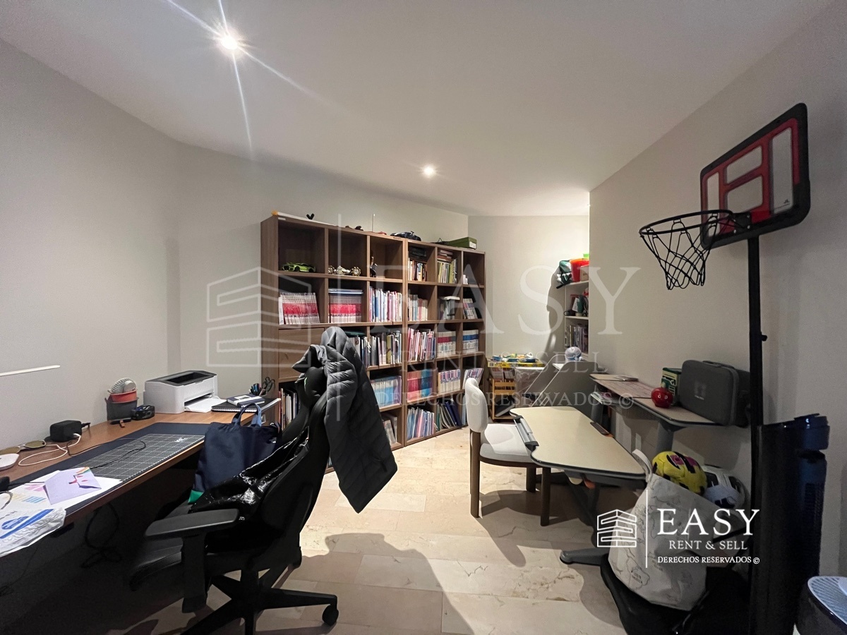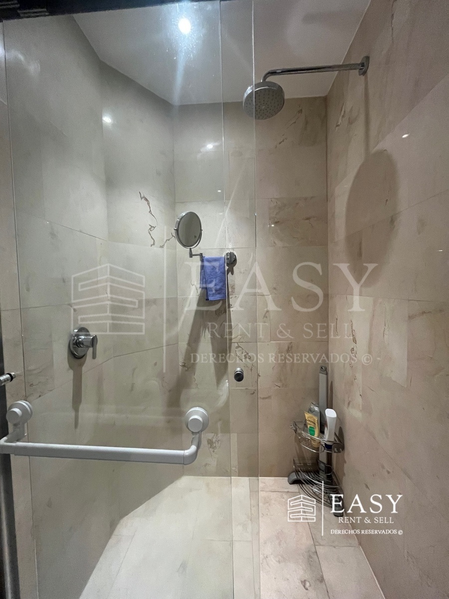El departamento está equipado con aire acondicionado en estancia y persianas eléctricas blackout y traslúcidas en todos los ambientes. Consta de 179 metros habitables en los cuales hay baño de visitas y vestíbulo, amplia estancia, cocina semiabierta y cuarto de servicio. En el área privada hay una family room o estudio y tres recámaras cada una con baño completo. Baño de recámara principal cuenta con tina.