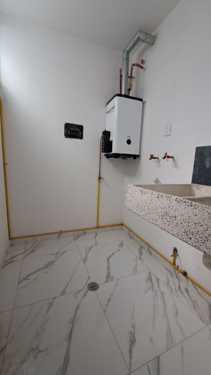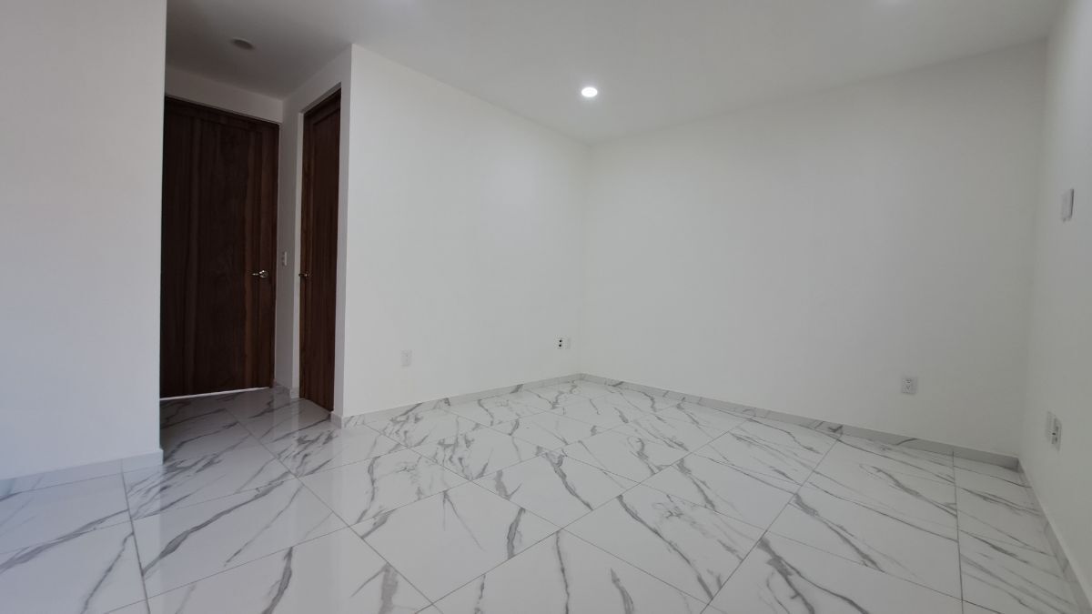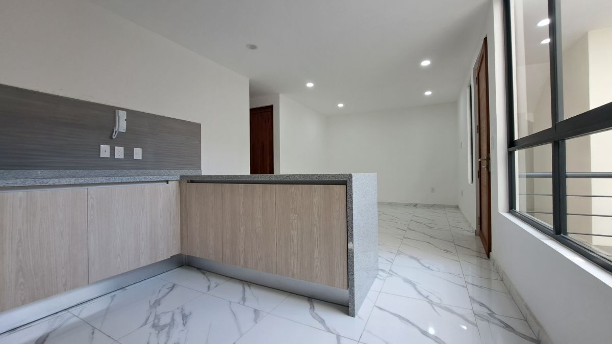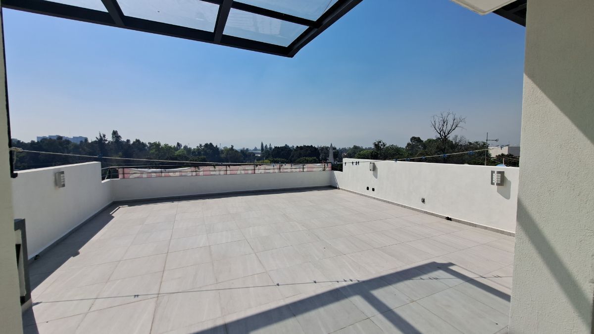 Apartment for Rent in Presidentes Ejidales 1st section. Coyoacán Mayor's Office. Brand new on the first floor – Exterior with Balcony. 70 m2. It consists of living-dining room, equipped kitchen, breakfast bar, 1 full bathroom, 2 bedrooms with closet, integrated laundry area in the apartment, 1 parking space. Luxury finishes, porcelain tile floors, blinds. Common roof garden, elevator. Maintenance $500.00. Additional cost for the parking gate control $1000.00. No pets allowed.