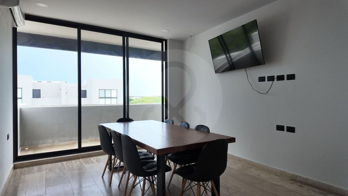 Furnished apartment in Temozón Norte, ideal due to its strategic location near universities, convention center, hospitals, and access to the Mérida-Progreso highway. It has 2 bedrooms, 2 full bathrooms, living-dining room, and kitchen equipped with high-quality appliances. Amenities include an Adidas paddle court, social area with pool, elevators, Sport Bar, covered parking for 2 vehicles, and 24/7 security. Rental conditions: $21,000 monthly with maintenance included, 1 month deposit, guarantor or double deposit, and contract at no cost. An excellent option to live in the Kuma development!Departamento amueblado en Temozón Norte, ideal por su ubicación estratégica cerca de universidades, centro de convenciones, hospitales y salida a la carretera Mérida-Progreso. Cuenta con 2 recamaras, 2 baños completos, sala-comedor y cocina equipada con electrodomésticos de alta calidad. Amenidades como cancha de pádel adidas, área social con alberca, elevadores, Sport Bar, estacionamiento techado para 2 vehículos y seguridad 24/7. Condiciones de renta: $21,000 mensuales con mantenimiento incluido, 1 mes de depósito, aval o doble depósito y contrato sin costo. ¡Una excelente opción para vivir en el desarrollo Kuma!
