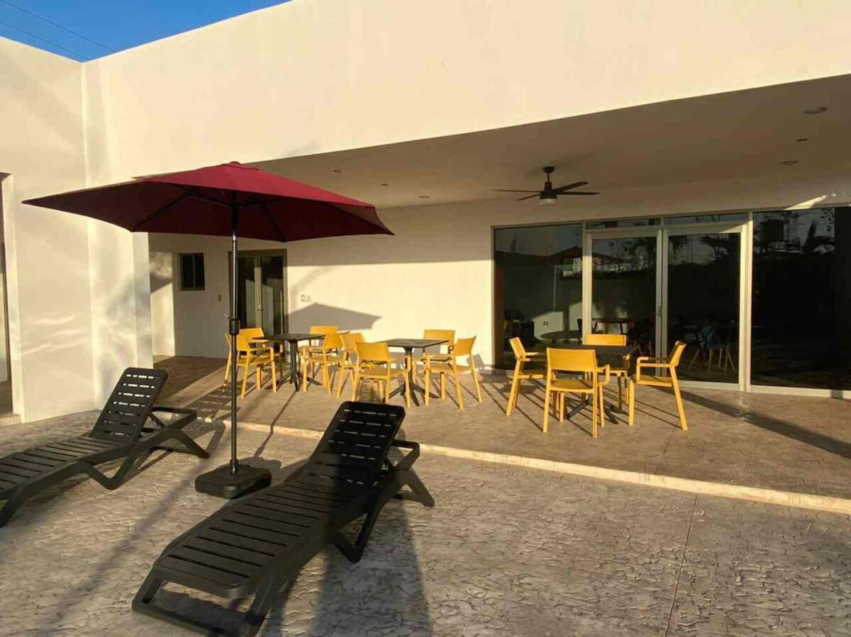 Alberca con canal de nado, gimnasio, área bar, área climatizada, baños, terraza con asoleadero.