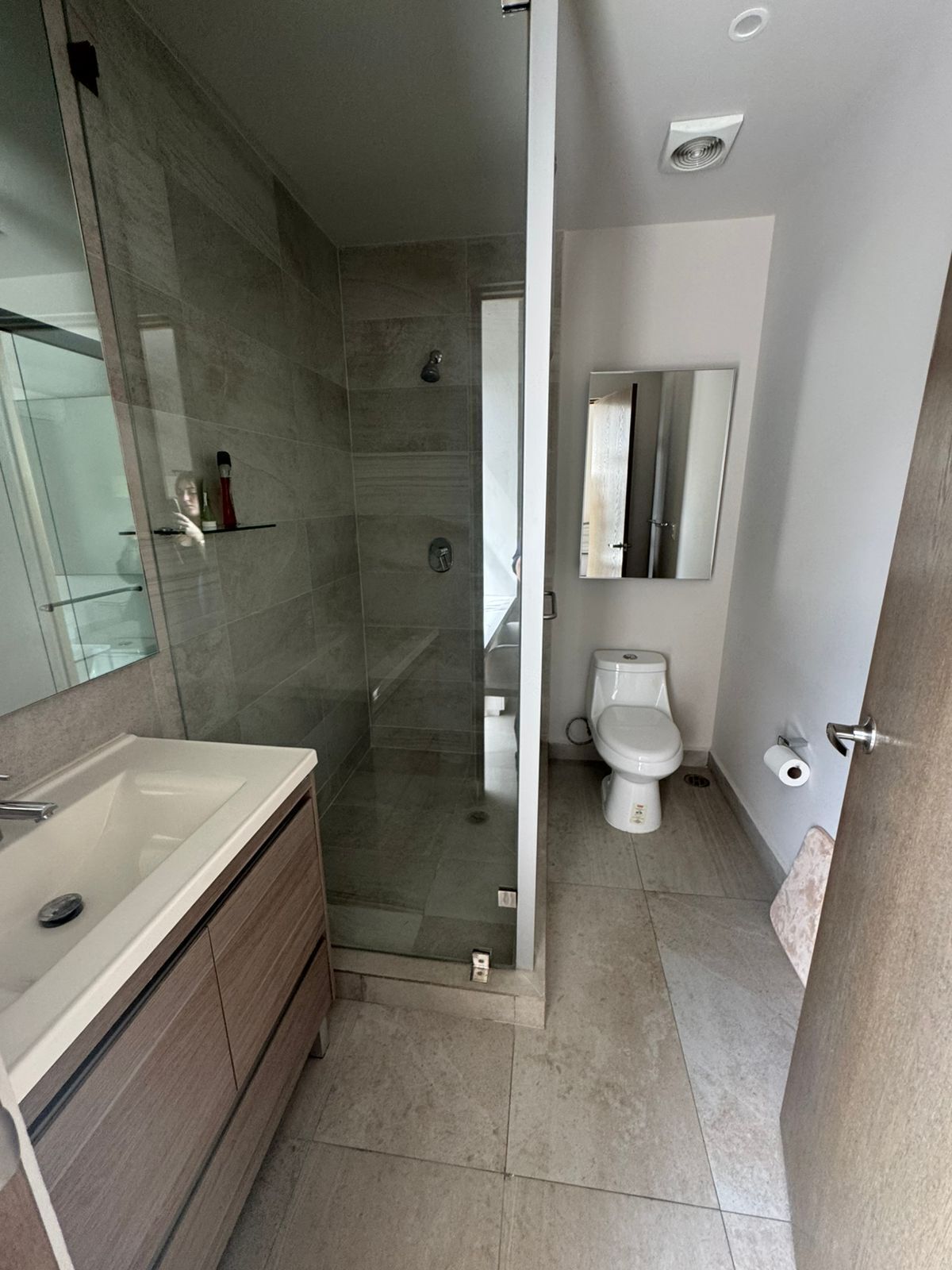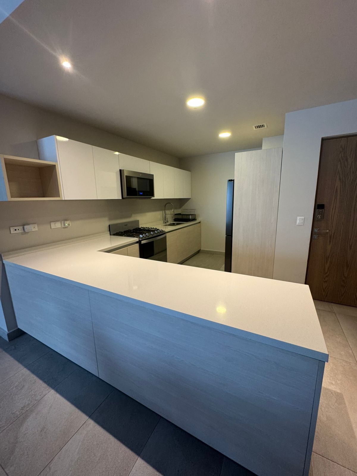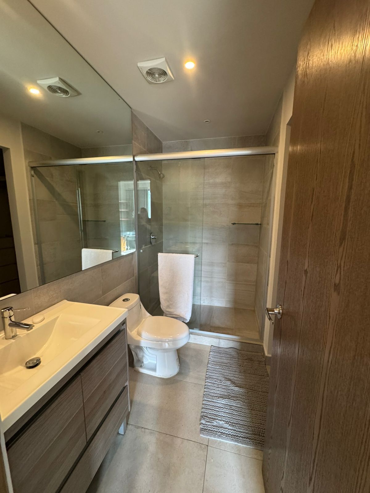 Fully equipped and semi-furnished, with 2 bedrooms each with a bathroom, the master bedroom with a walk-in closet and the secondary bedroom with a wall closet, living room, dining room, foyer, guest bathroom, terrace, 2 covered parking spaces, and storage room. The tower has amenities such as grills, basketball court, gym, culinary center, dog park, swimming pool, golf simulator, and 24/7 security service.