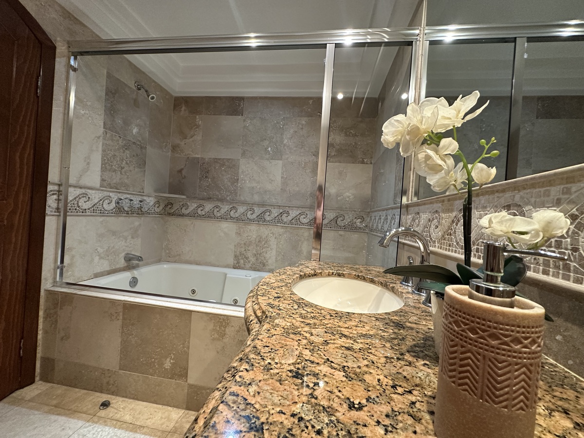 - 2 recĂĄmaras, la principal con walk-in closet y baĂąo privado con jacuzzi.