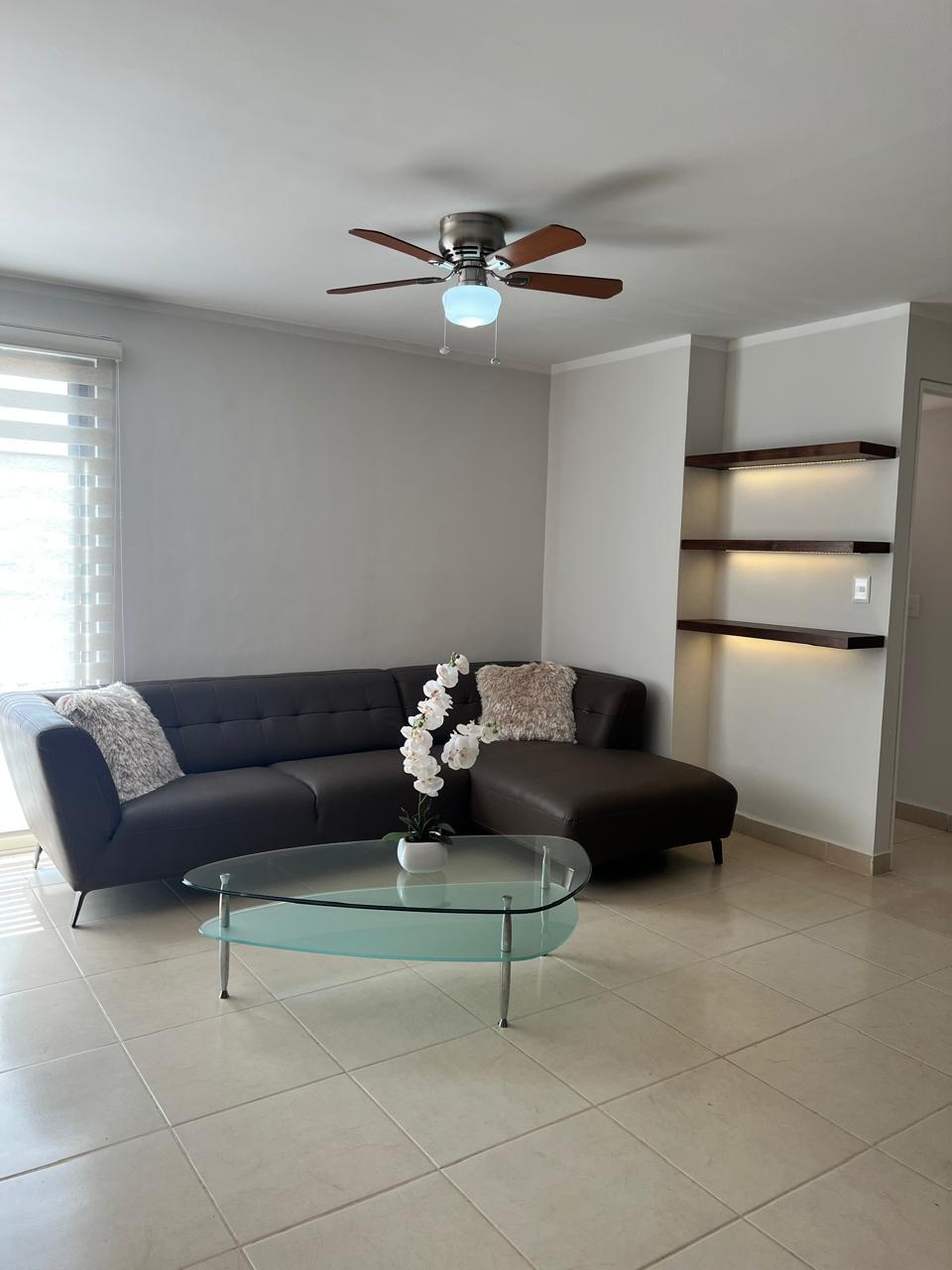THE APARTMENT IS LOCATED ON THE FIRST FLOOR, IT HAS A LIVING ROOM WITH A TV SCREEN, DINING ROOM, INTEGRAL KITCHEN; 3 BEDROOMS, THE MAIN ONE WITH A CLOSET, VANITY, AND BATHROOM, THE SECONDARY ONES WITH A CLOSET AND SHARE A BATHROOM; IT HAS FANS AND LAMPS, BALCONY, 2 PARKING SPACES.
