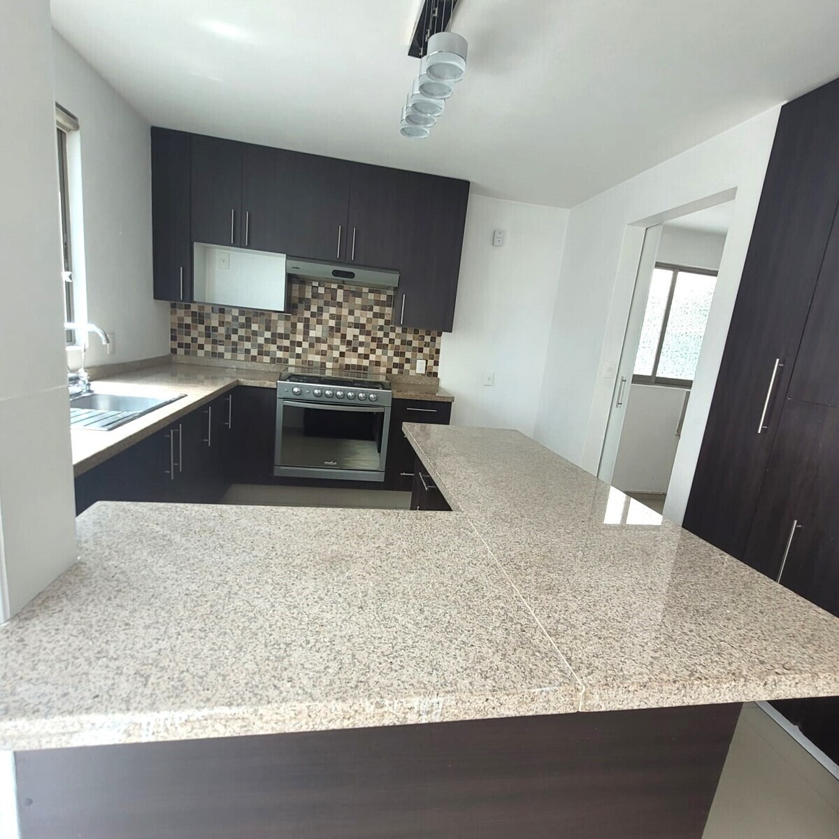 Garage para 2 autos, sala comedor con chimenea, cocina equipada muy amplia con barra desayunador de granito, 3 recámaras, la principal con closet y baño y las otras 2 recámaras con closet y comparten baño, área de lavado incluida en el departamento.