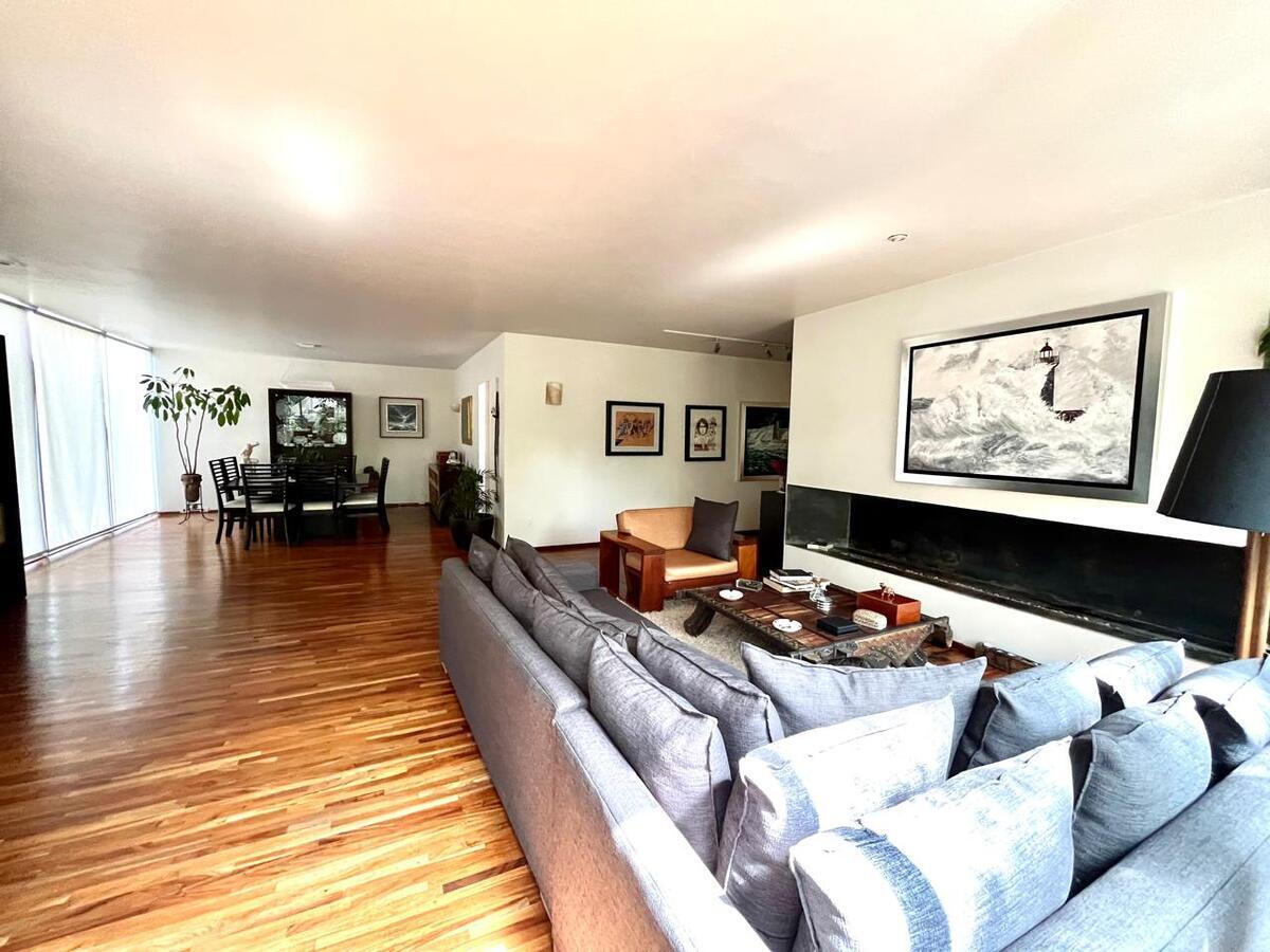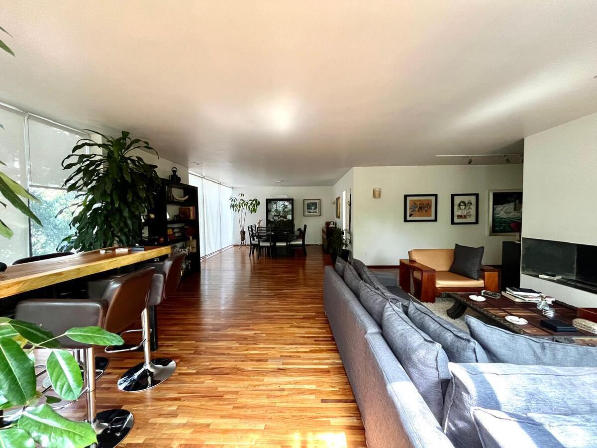 Cuenta con estancia muy grande con salida a una terraza con vista arbolada, 3 recámaras la principal con otra terraza, gran vestidor y baño, las otras dos recámaras comparten baño, medio baño de visitas, sala de TV, cocina con área de antecomedor, 2 lugares de auto. Área de servicio independiente con cuarto de servicio y cuarto de lavado.