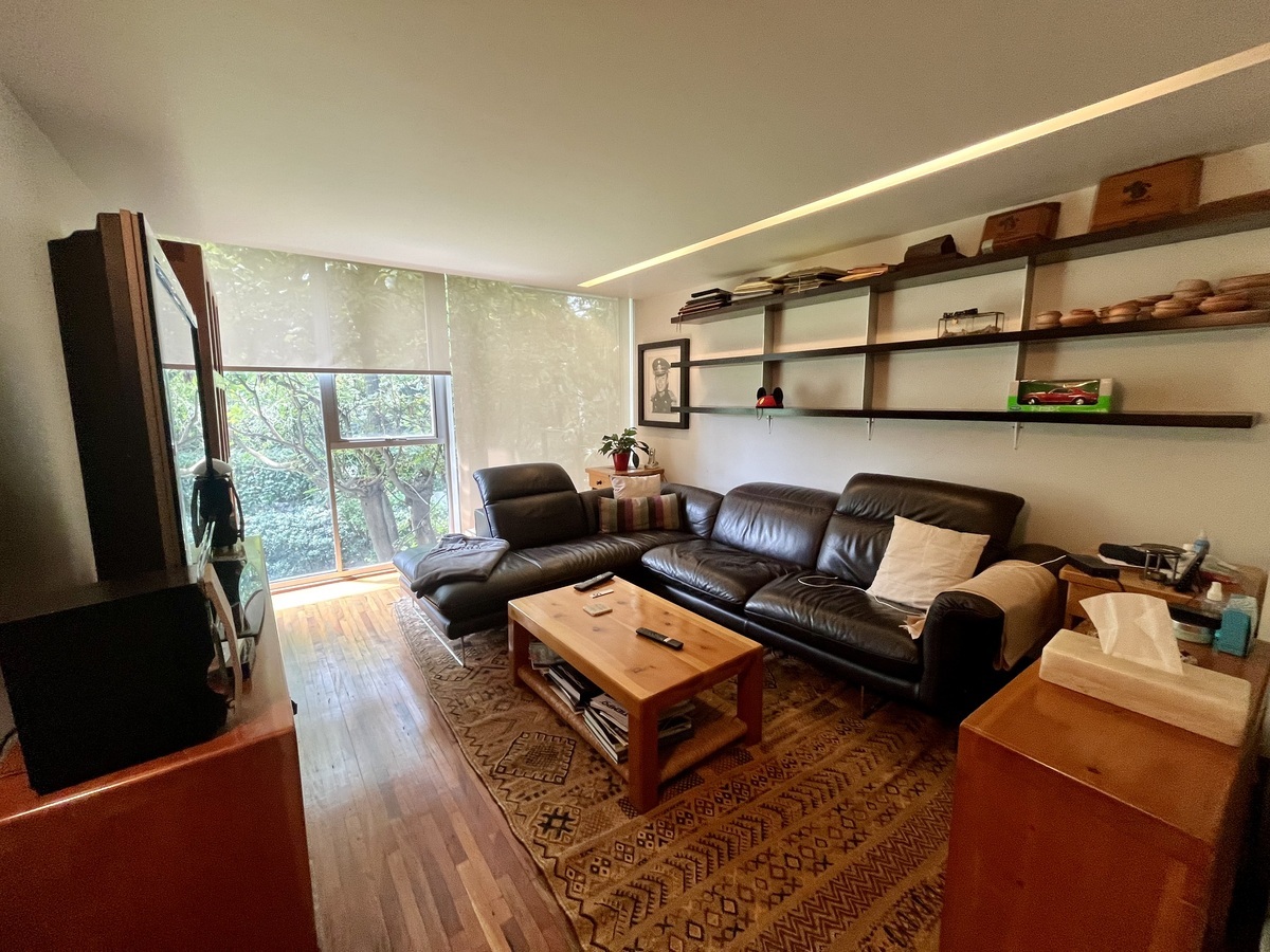The garden shown in the photo belongs to the apartment below, so there is no access.Se renta departamento en duplex. En segundo piso no tiene con elevador.