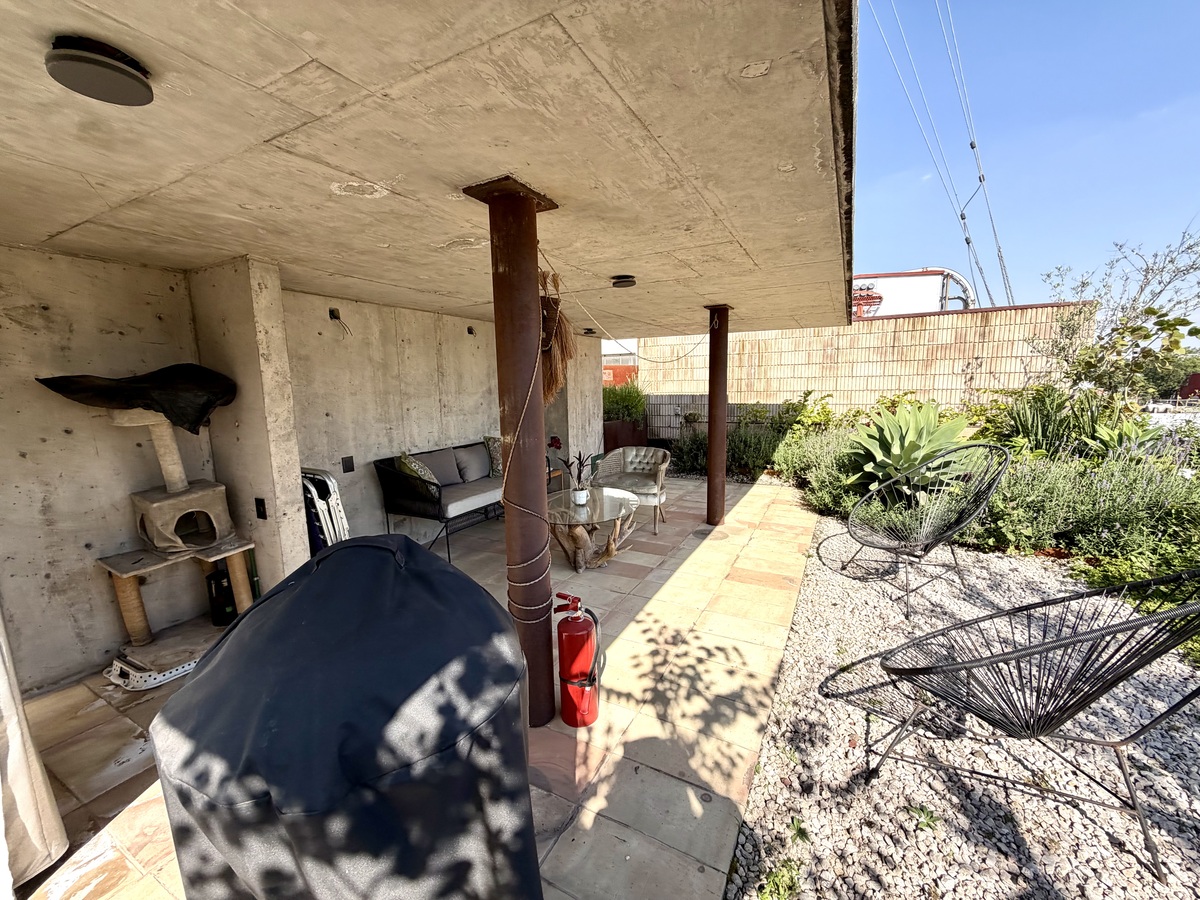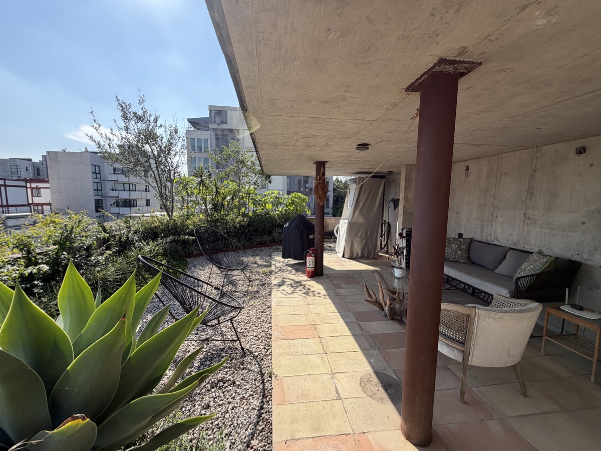 - Terraza techada y área con plantas y flores con riego automático, ideal para disfrutar con amigos y descansar.