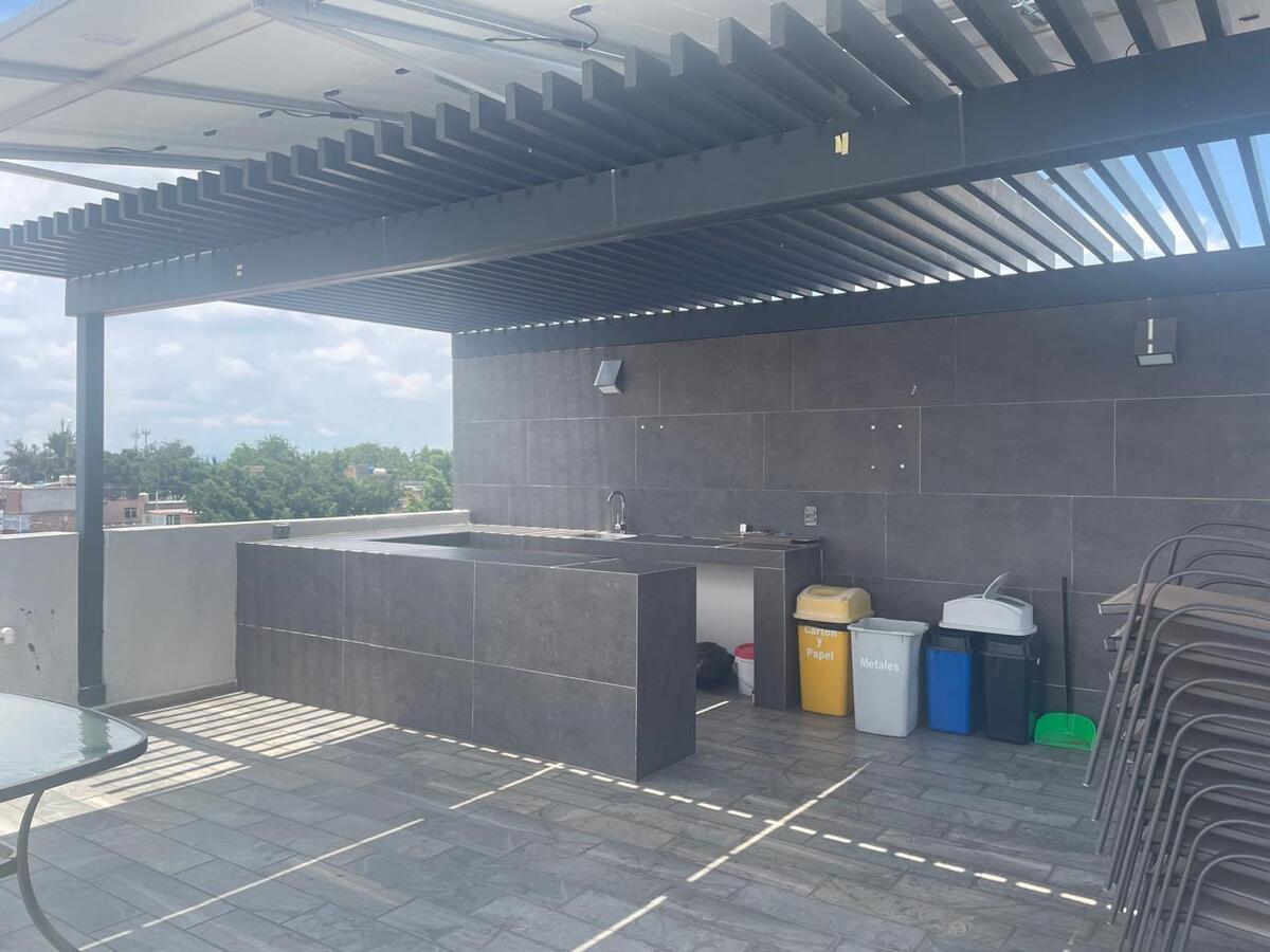 Beautiful semi-furnished apartment. The building has a total of 22 apartments. It has surveillance cameras on each floor, as well as at the entrances to the building. The apartment has an excellent layout; kitchen with breakfast bar, service room, living-dining room with very good ventilation and lighting, the master bedroom with a full bathroom and dressing room, secondary bedroom with closet, in addition to a full bathroom that serves the secondary bedroom and the social area. The apartment has a parking space and access is through an electric gate. The building has a roof garden equipped with wifi, a half bathroom, kitchenette, tables, and a large jacuzzi.Hermoso departamento semi amueblado. El Edificio cuenta con un total de 22 departamentos. Cuenta con cámaras de vigilancia en cada piso, así como en los accesos al edificio. El departamento tiene una excelente distribución; cocina con barra desayunador, cuarto de servicio, sala comedor con muy buena ventilación e iluminación, la recámara principal con baño completo y vestidor, recámara secundaria con closet, además de un baño completo que da servicio a la recámara secundaria y al área social. Al departamento le corresponde un espacio de estacionamiento y el acceso es atreves de portón eléctrico. El edificio cuenta con un roof Garden equipado con wifi, medio baño, cocineta, mesas y un gran jacuzzi.