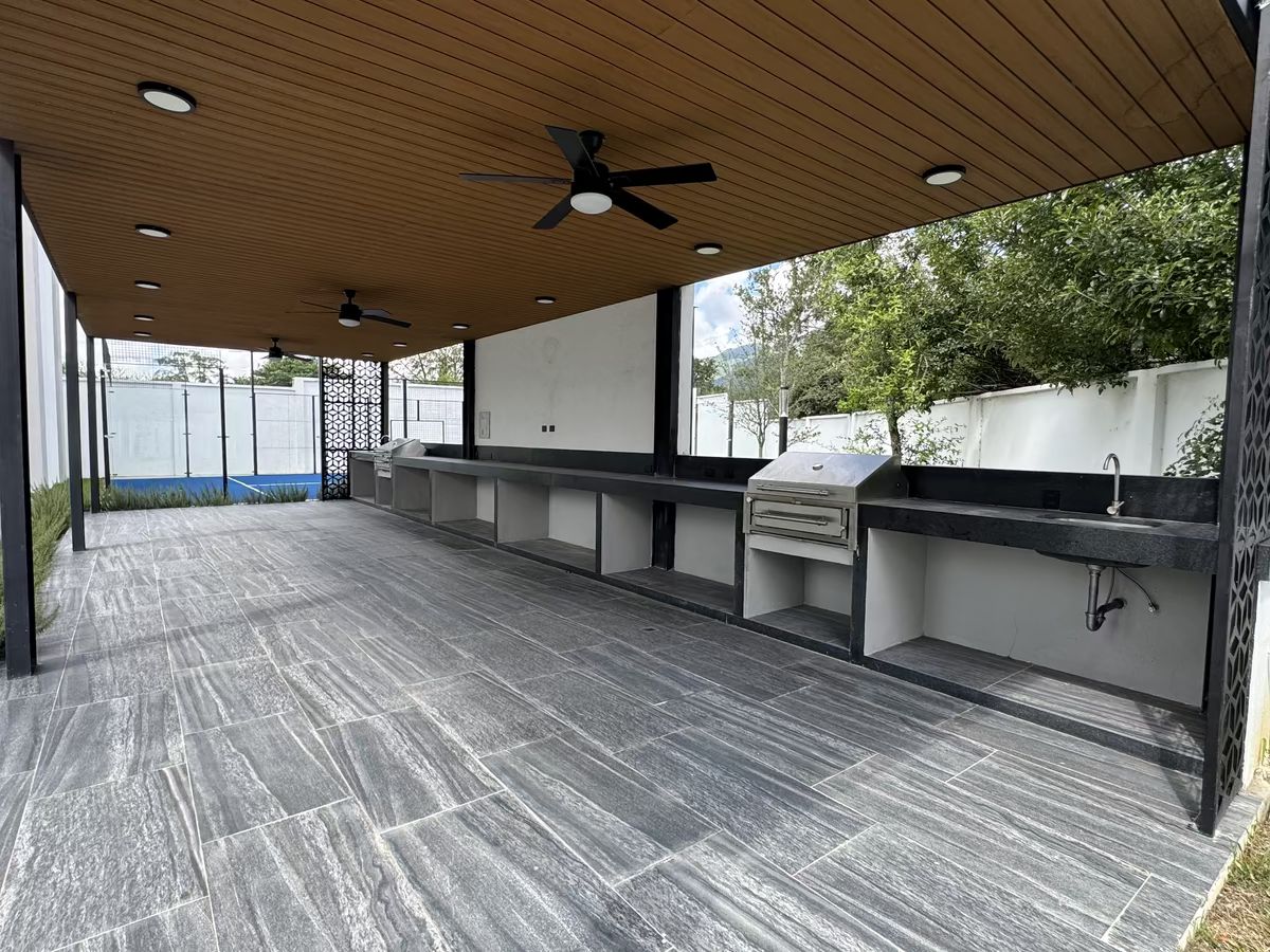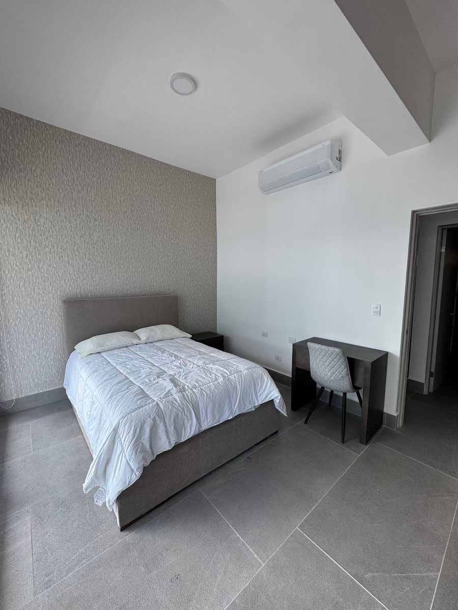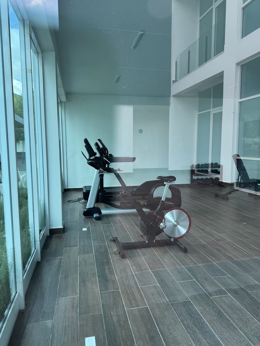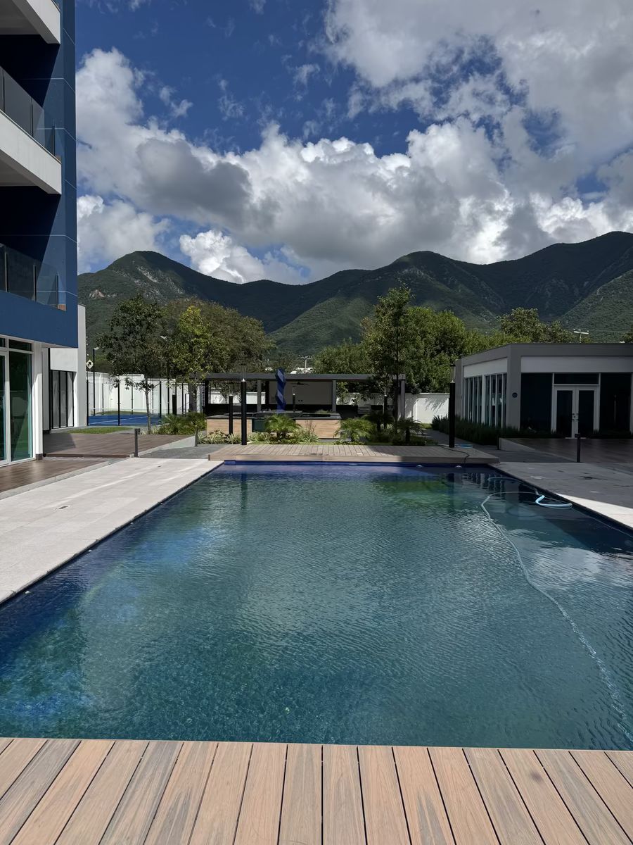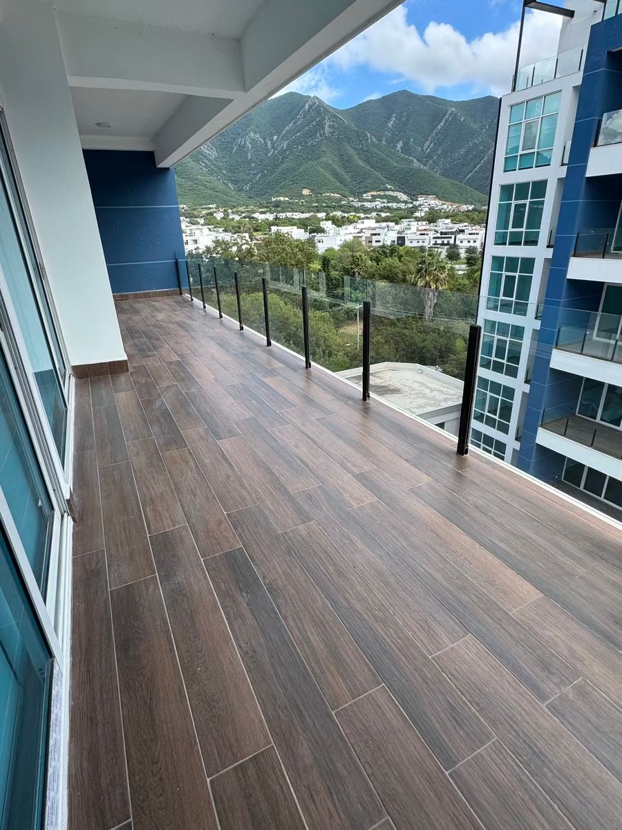 New Apartment on the national highway, in the Silika Tower. The apartment is on the 5th floor and has views towards the Santiago mountains. It has 123 square meters and features 2 bedrooms, the main one with a walk-in closet and TV. The secondary one has a wall closet. It also has a fully equipped kitchen with appliances such as an electric stove, microwave, and refrigerator. The social area is consolidated with a living room and dining room for 6 people and an 86" TV. It has 2 full bathrooms, a living room, and a terrace of 23 square meters. It is located in Tower A and has amenities: Gym, 2 grills, pool, paddle court, and racquetball court. It has 2 parking spaces. 3 inverter mini-splits in the social area and both bedrooms. It has blinds on all its windows. No Pets No Students.Nuevo Departamento en la carretera nacional, en la Torre Silika el departamento esta en el 5 piso tiene unas vistas a hacia la sierra de santiago. Tiene 123 mts cuenta con 2 recamaras, la principal con su walking closet y Tv. La secundaria con su closet de pared. Asi mismo tiene una cocina integral con electrodomesticos como lo son parrilla electrica, microondas y refrigerador. El area social esta consolidad con sala y comedor para 6 personas y una TV de 86", cuenta con 2 baños completos un living room y una terraza de 23 mts. Esta ubicado en la Torre A y cuenta con amenidades: Gimnasio, 2 asadores, alberca, cancha de Pade y Raquet. Tiene 2 cajones de estacionamiento. 3 mini splits inverter en area social y las dos recamaras. Cuenta con persianas en todas sus ventanas. No Mascotas No Estudiantes