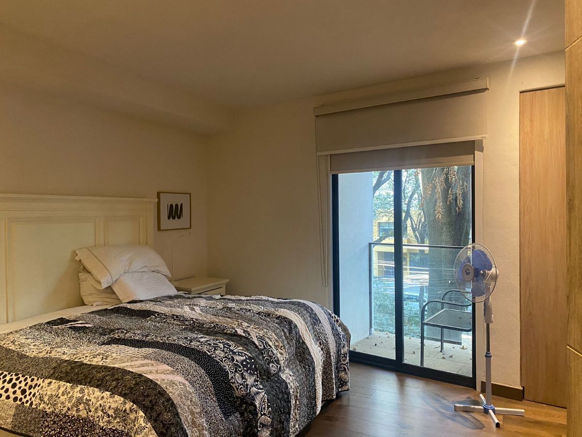 Spectacular apartment for rent in La Condesa, newly built by the renowned architect Artigas. Apartment of 140 m2 distributed in 2 bedrooms, 2 full bathrooms, and 2 parking spaces. It is fully furnished and equipped. It has 2 balconies in the living room and one balcony in the master bedroom. The master bedroom has a large walk-in closet. The finishes are top-notch, with floor-to-ceiling marble in the bathrooms, wooden floors, it has curtains and blackout shades throughout the apartment and comes with appliances. Service room and laundry.