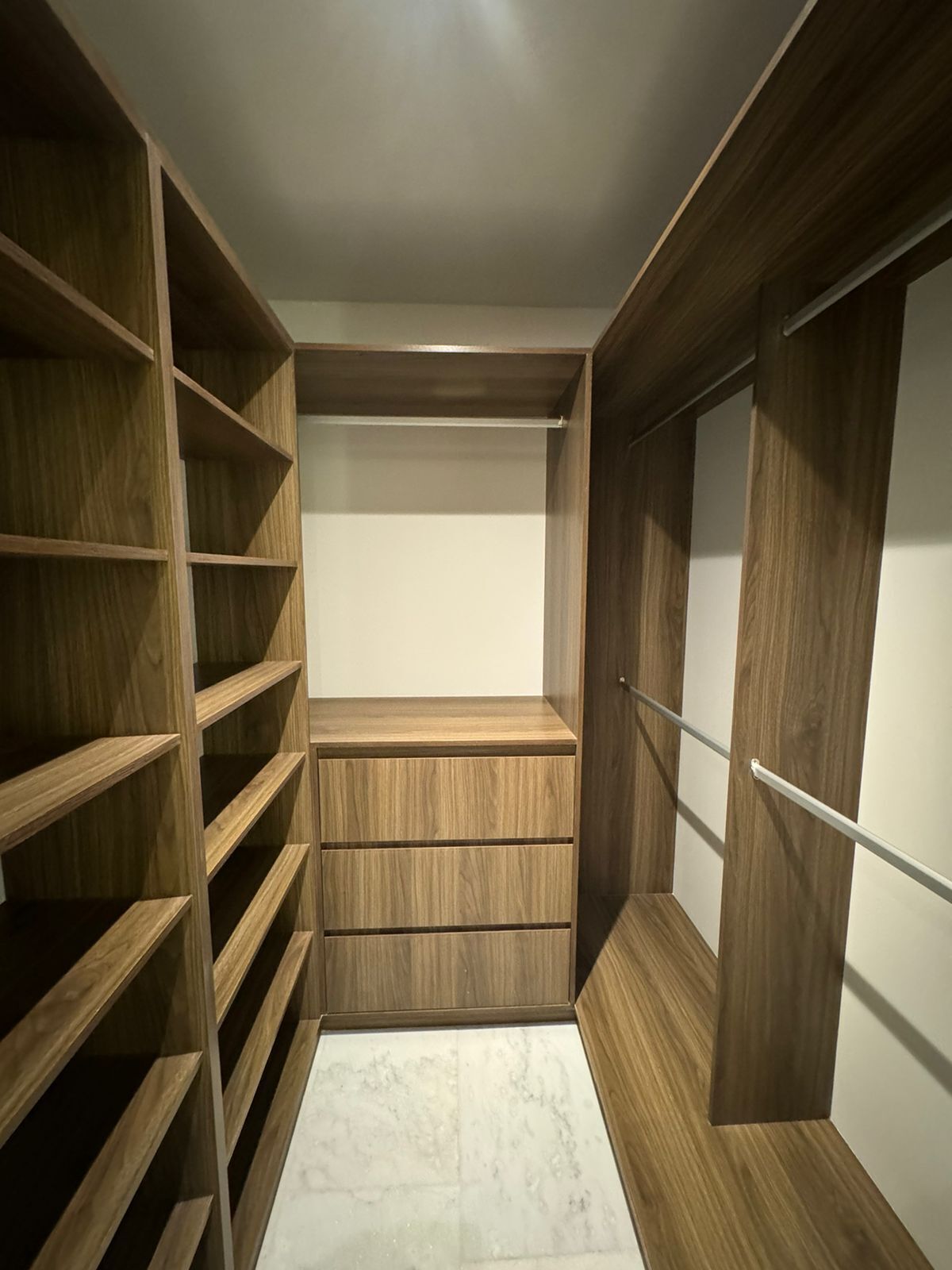 3 bedrooms each with its own bathroom, the master has a closet and dressing room