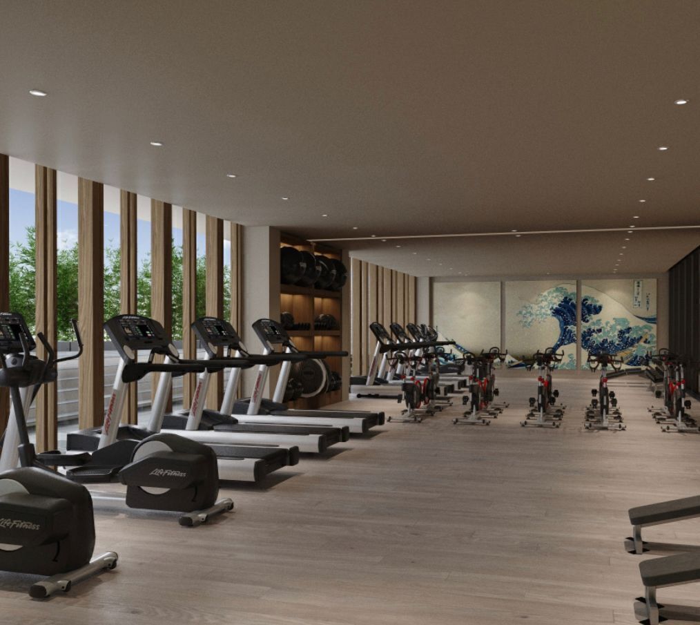 Pool | Playroom | Gym | Yoga terrace | Paddle court | Business center | Lobby | Bar-lounge | Lounge | Swimming pool.
