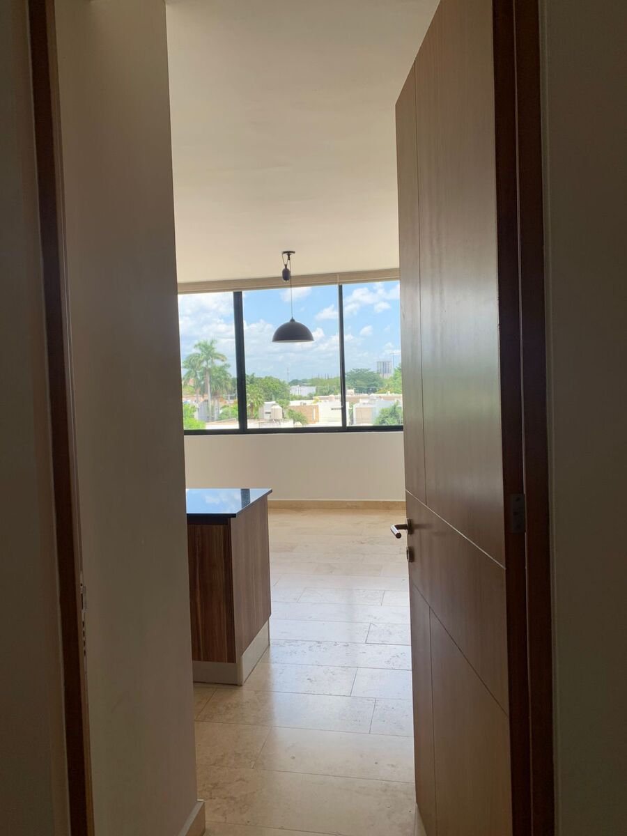 Exclusivo departamento en renta ubicado en Montebello, una de las zonas residenciales con mayor plusvalía en el norte de Mérida. El inmueble se encuentra en el tercer y último piso de un edificio estrenado a fines de 2022, con elevador y únicamente 12 departamentos en total, lo que asegura privacidad y una convivencia vecinal tranquila.