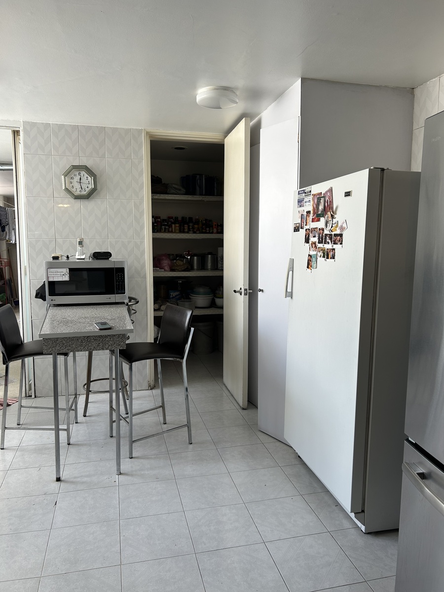 Cuenta con cocina integral con muchos espacios de almacenaje, una alacena grande, y antecomedor separado. A un paso de la cocina se encuentra el cuarto de servicio con baño completo y el cuarto de lavado.