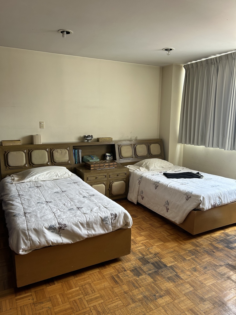 Cuenta con una muy amplia estancia con balcón, en la que caben un comedor y sala grandes, y espacio para un family room. Tiene 3 recámaras grandes, la principal con baño completo. Las otras dos reámaras comparten baño en el pasillo.