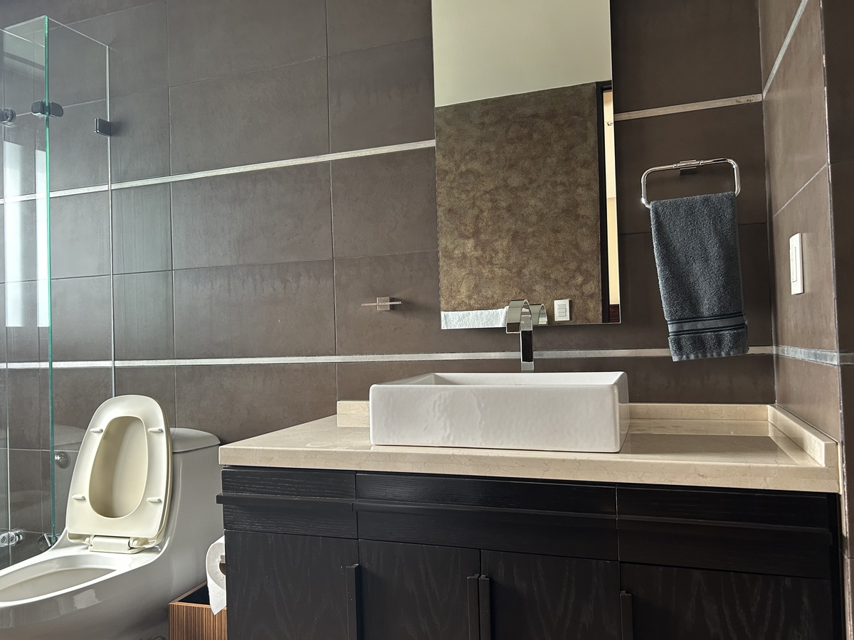 Con una superficie de 200 m2, 2 recámaras, la principal con amplio walk-in closet, jacuzzi y regadera. Tiene salida al balcón. La 2da habitación con su baño y clóset con salida al balcón.