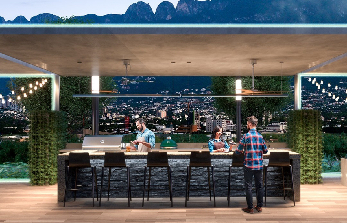 Beautiful brand new apartment, equipped with kitchen and central air conditioning. Double view, on one side to the Sierra Madre and on the other to Cerro de las Mitras. Luxury amenities.