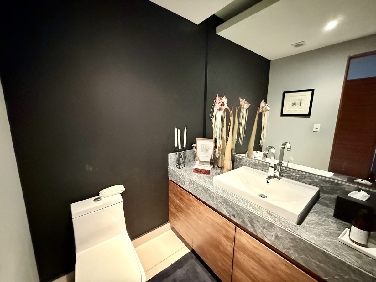 The publication of this information does NOT represent a public offer, so all transactions must be made personally in accordance with the real estate agency's business practices and to be valid requires express authorization.Este departamento cuenta con 257m2, tiene sala, comedor, cocina integral amplia con despensa, family room, baño de visitas, 3 recámaras con baño completo y vestidor, cuarto de lavado y cuarto de servicio con baño