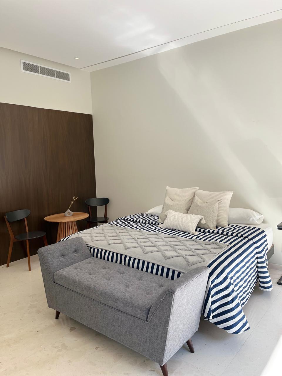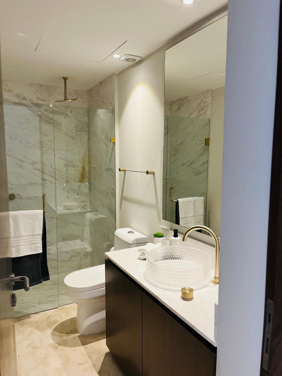 Located in Bolongo, Punta Mita, this exclusive apartment offers a modern design with luxury finishes. It features four spacious bedrooms, all equipped with closets; three of them with full bathrooms, tempered glass enclosures, and elegant gold-tone fixtures. In total, it has four bathrooms, highlighting the one in the master bedroom, which includes a walk-in closet, double sink, and a spectacular panoramic view.