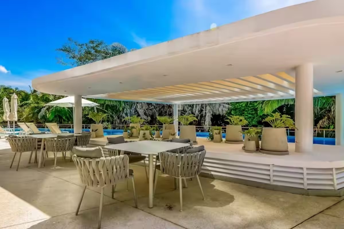 Ubicado en Bolongo, Punta Mita, este exclusivo departamento ofrece un diseño moderno con acabados de lujo. Cuenta con cuatro amplias recámaras, todas equipadas con clósets; tres de ellas con baño completo, canceles de cristal templado y elegantes accesorios en tono oro. En total, dispone de cuatro baños, destacando el de la recámara principal, que incluye un walk-in closet, doble lavabo y una espectacular vista panorámica.