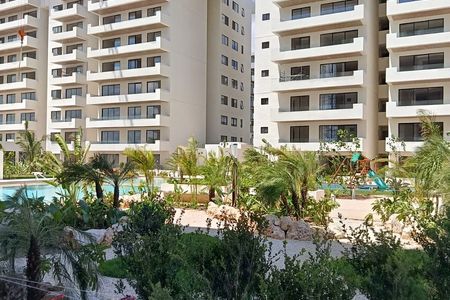 The building has a pool and sunbathing area, children's area, and a fully equipped relaxation area.